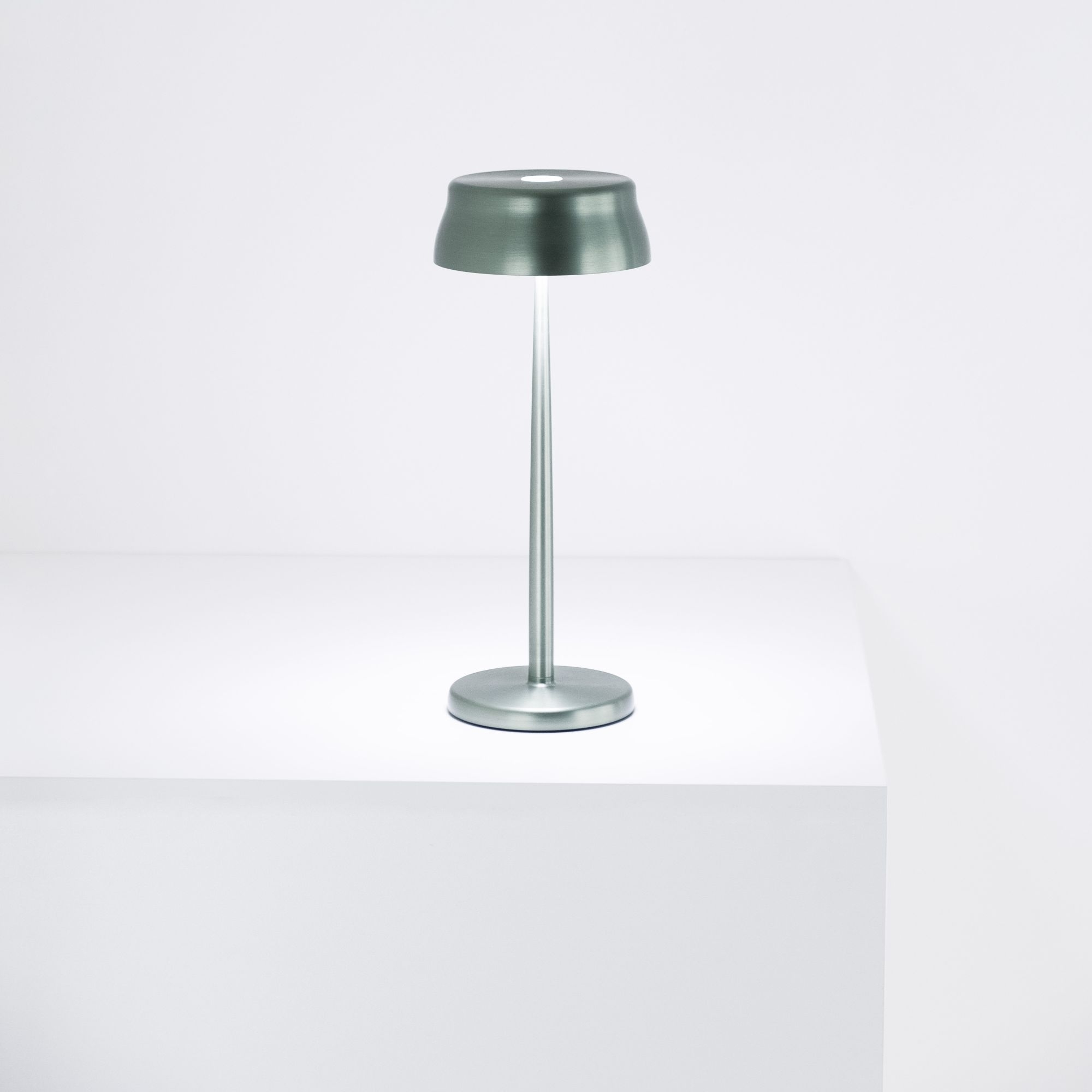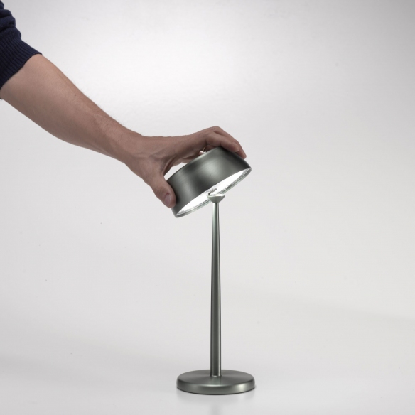 Lampada da tavolo ricaricabile Sister Light, realizzata in alluminio anodizzato. Disponibile in 5 eleganti finiture di colore, la lampada da tavolo Sister Light è dotata di dimmer a 4 livelli, che rende possibile la determinazione al meglio dell'intensità luminosa in ogni ambiente. La testa della lampada è calamitata sullo stelo; se separata diventa una pratica luce d'emergenza. Adatta sia per uso interno che esterno, la lampada Sister Light ha una durata elevata, fino a 58 ore! Disegnata da Federico De Majo per Zafferano.