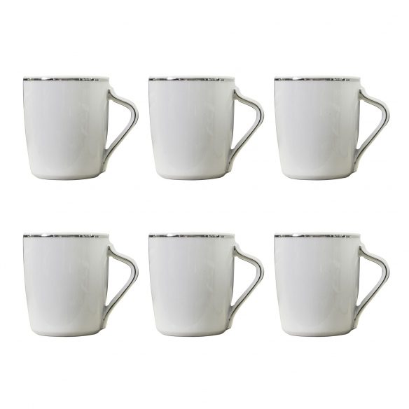 6 tazzine da caffè da 10 cl, appartenenti alla collezione Plato, realizzate in finissima porcellana. Caratterizzate da un design minimale ma elegante, le tazzine Plato presentano un suggestivo decoro platino sul bordo e sul manico, che ne accresce la valenza decorativa. La massima qualità della porcellana le rende estremamente resistenti e durature, creando un oggetto unico, destinato ad arricchire la tua tavola per molto tempo. Realizzate da Rosenthal.