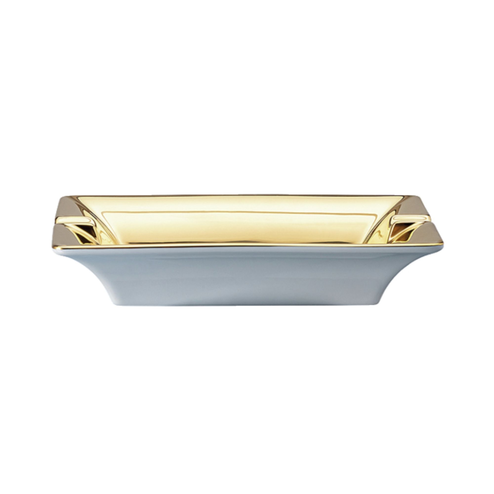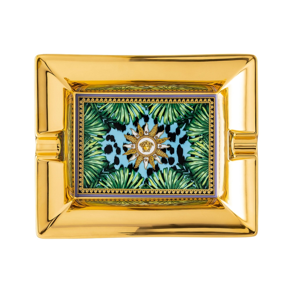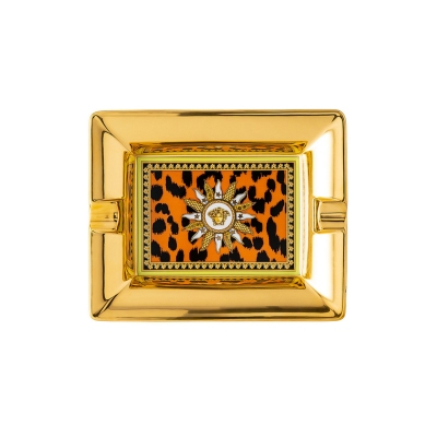 Posacenere, appartenente alla collezione Jungle Animalier, realizzato in finissima porcellana decorata. Un eccezionale complemento d'arredo, il posacenere presenta la fantasia Jungle Animalier in una palette di colori brillanti, infatti il pattern è maculato blu. Al centro c'è un sole che racchiude l'iconica "Medusa" di Versace. Il posacenere Jungle Animalier si adatta a tutti gli arredamenti più estrosi e ti farà viaggiare verso luoghi esotici e lontani! Disegnato e Realizzato da Rosenthal Versace.