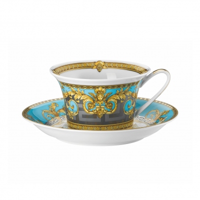 Tazza mug dalla capacità di 35 cl, appartenente alla collezione Prestige Gala, realizzata in finissima porcellana decorata. Caratterizzata dallo splendido decoro "Prestige Gala Le Bleu", questa favolosa tazza è una lussuosa ed elegante aggiunta a qualsiasi collezione, grazie ai fantastici decori in oro, grigio e azzurro che esaltano l'intero oggetto. Realizzata da Versace Rosenthal.