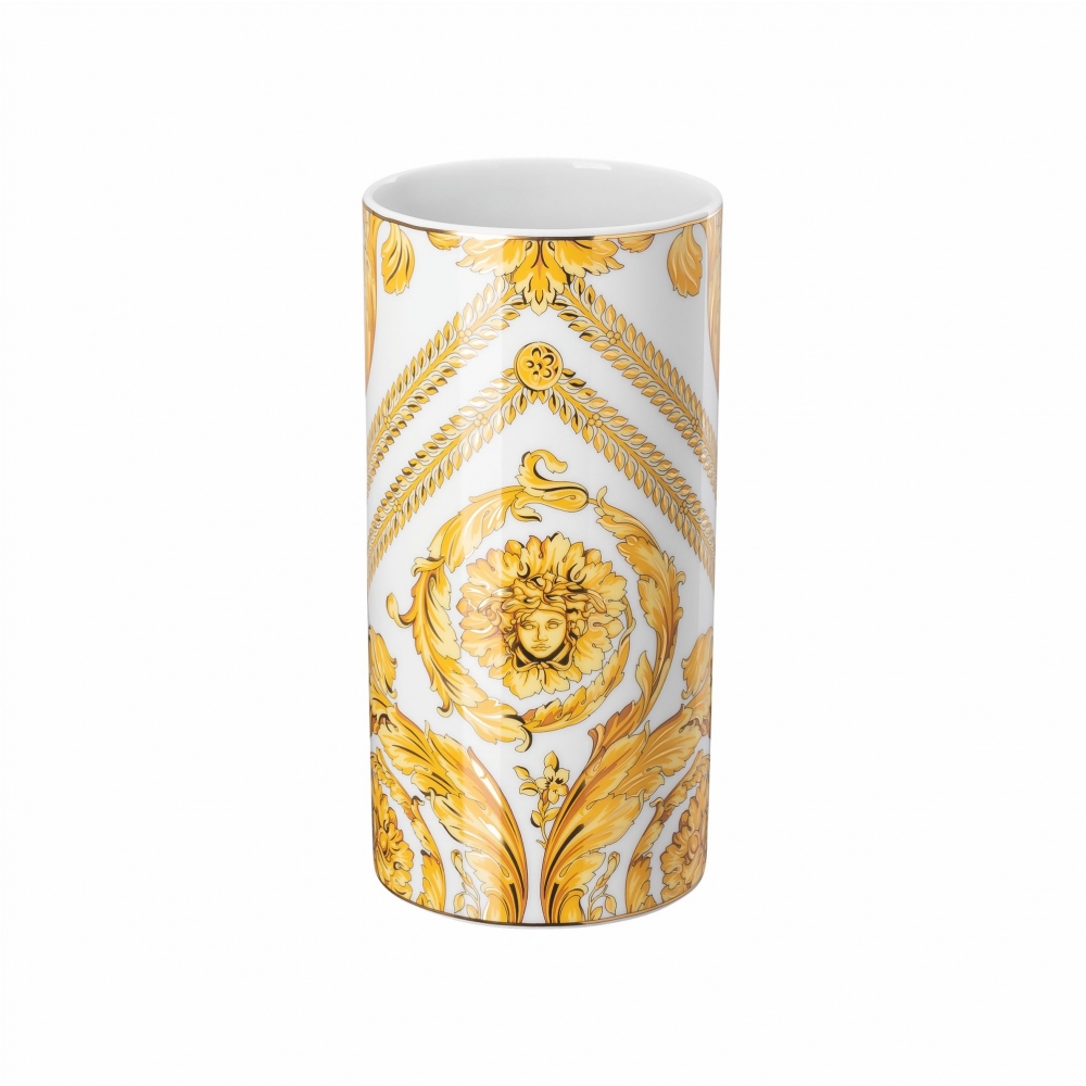 Vaso dall'altezza di 24 cm, appartenente alla collezione Medusa Rhapsody, realizzato in finissima porcellana decorata. Riccamente decorato con disegni dorati, che raffigurano la mitica Medusa con i suoi capelli di fiori barocchi che si contorcono e gli occhi penetranti. Bellissima aggiunta a qualsiasi arredamento, il vaso Medusa Rhapsody è perfetto per coloro che prediligono uno stile di arredamento sofisticato. Realizzato da Versace Rosenthal.