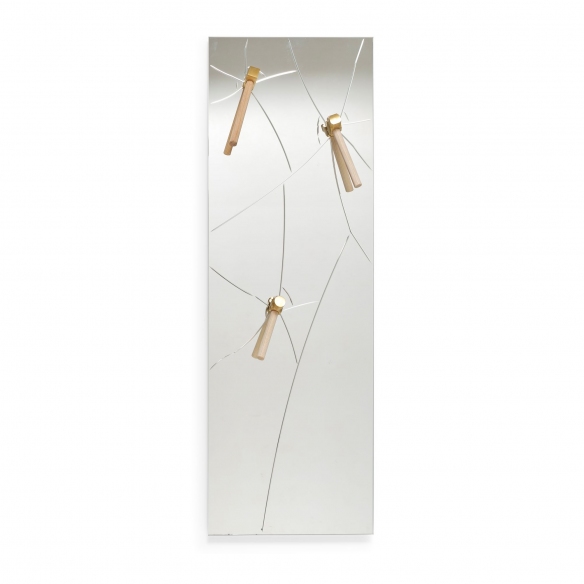 Specchio appendiabiti 50x150 cm, appartenente alla collezione Bastaaa, realizzato con "martello" in frassino olivato e fusione di ottone. Simpatico ed ironico, lo specchio Bastaaa è un esempio di applicazione di arte contemporanea, rappresenta la rabbia, da qui il nome. Disegnato da Marcantonio per Mogg.