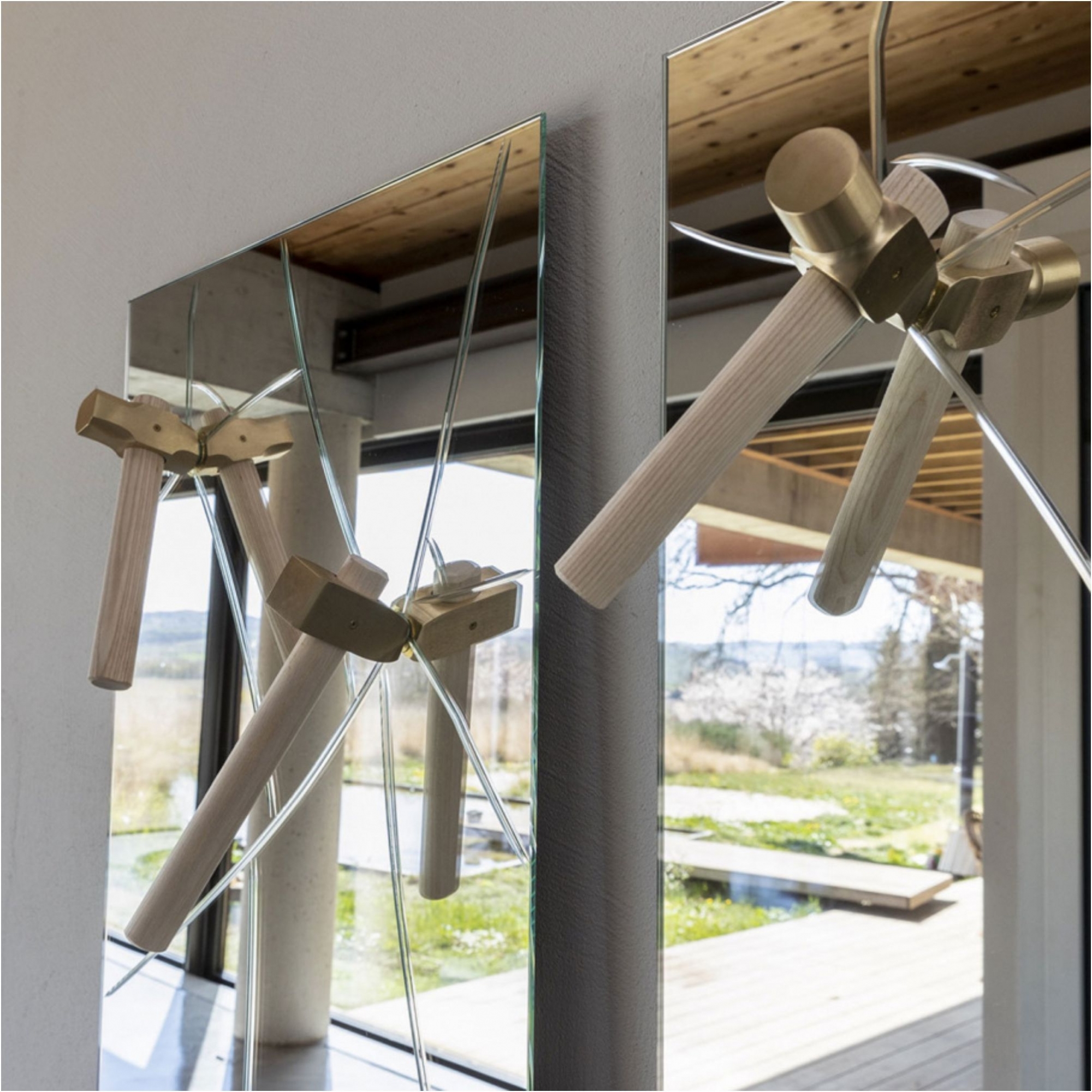Bastaaa è più di un appendiabiti, è un’istallazione in chiave moderna. Come dice Marcantonio: “Gli oggetti che hanno una forte identità ci coinvolgono maggiormente. Il martello è un attrezzo molto forte nel nostro immaginario, è legato ad un gesto ben preciso, martellare, piantare un chiodo, rompere un salvadanaio o prendere a martellate qualsiasi cosa che vogliamo rompere, e quando siamo arrabbiati ci vorrebbe proprio un martello per spiegare alla stampante come funzionare! Mi piacciono le installazioni che raccontano una storia, soprattutto se lo fanno con ironia. Ho esteso questo momento di follia isterica fino ad arrivare al muro perché, in realtà, questi martelli sono attaccapanni!”