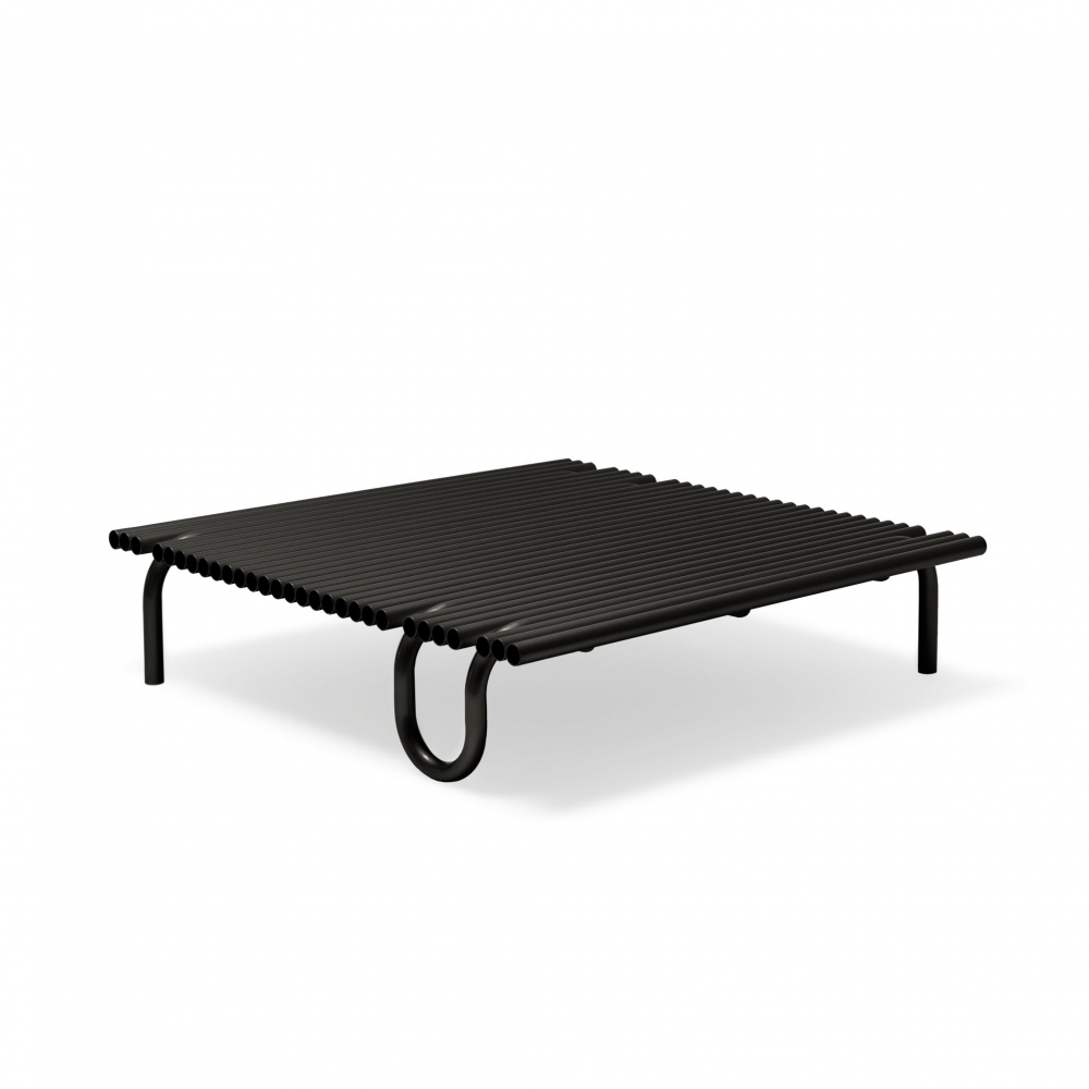 Tavolino 112x112 cm appartenente alla collezione Pipelines, realizzato con tubi in metallo nelle finiture oro satinato e nero. E' caratterizzato da un design esclusivo, in cui dei tubi allineati creano una superficie d'appoggio, mentre all'estremità si estendono dando vita alle gambe. Posizionabile perfettamente in svariate zone del lato living dell'arredamento, il tavolino Pipelines funge sia da pratico mobile portaoggetti sia da svuotatasche. Disegnato da BCXSY per Mogg.