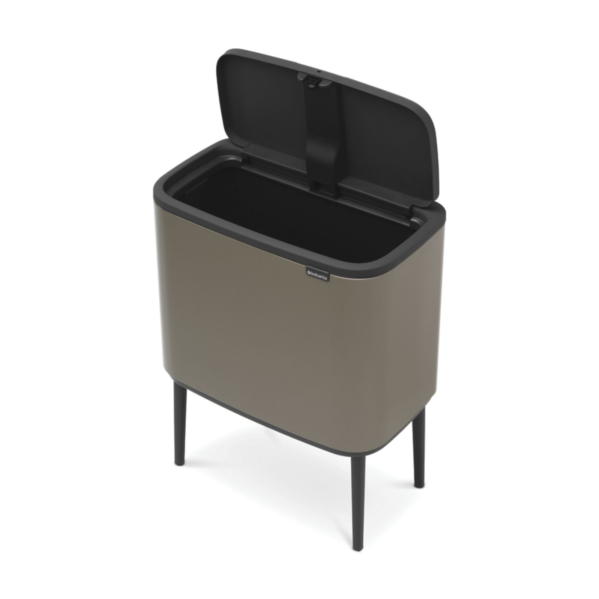Pattumiera Bo Touch Bin dalla capacità di 36 litri, realizzata con struttura in metallo e cestini rimovibili in plastica. Disponibile in 9 eleganti e versatili finiture di colore, la pattumiera Bo Touch Bin è un accessorio in grado di unire design e funzionalità. Si apre con un leggero tocco: l'apertura con sistema soft-touch ti permetterà di sollevare il coperchio semplicemente sfiorandolo! Le gambe antiscivolo regolabili garantiscono grande stabilità. Compatta e salvaspazio, la pattumiera Bo Touch Bin si inserisce facilmente in qualsiasi angolo della casa! E' inclusa una confezione gratuita di sacchetti PerfectFit. Realizzata da Brabantia.