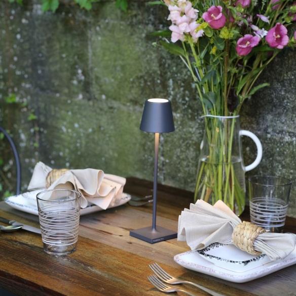 Lampada da tavolo ricaricabile Poldina Pro Micro, realizzata con corpo in alluminio verniciato e diffusore in policarbonato. Disponibile in ben 14 finiture di colore, Poldina Pro Micro si appresta ad illuminare con stile qualsiasi ambiente. E' una versione "ridotta" rispetto all'iconica lampada Zafferano, il design, invece rimane invariato. Le dimensioni ridotte la rendono perfetta per i piccoli spazi e si sposta agilmente! Dispone di una batteria ricaricabile e di una sorgente a LED che si accende e si spegne tramite l'apposito pulsante touch posto sulla sommità del diffusore. Durata batteria garantita per oltre 7 ore. Grado di protezione IP65 (uso interno ed esterno). Base di ricarica in dotazione. Realizzata da Zafferano.