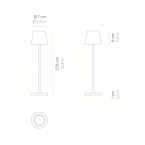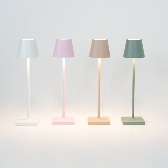 Lampada da tavolo ricaricabile Poldina Pro Micro, realizzata con corpo in alluminio verniciato e diffusore in policarbonato. Disponibile in ben 14 finiture di colore, Poldina Pro Micro si appresta ad illuminare con stile qualsiasi ambiente. E' una versione "ridotta" rispetto all'iconica lampada Zafferano, il design, invece rimane invariato. Le dimensioni ridotte la rendono perfetta per i piccoli spazi e si sposta agilmente! Dispone di una batteria ricaricabile e di una sorgente a LED che si accende e si spegne tramite l'apposito pulsante touch posto sulla sommità del diffusore. Durata batteria garantita per oltre 7 ore. Grado di protezione IP65 (uso interno ed esterno). Base di ricarica in dotazione. Realizzata da Zafferano.