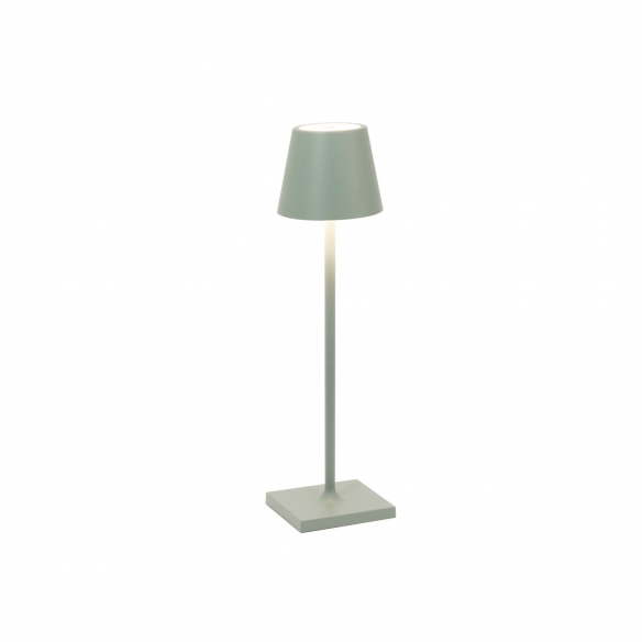 Lampada da tavolo ricaricabile Poldina Pro Micro, realizzata con corpo in alluminio verniciato e diffusore in policarbonato. Disponibile in ben 14 finiture di colore, Poldina Pro Micro si appresta ad illuminare con stile qualsiasi ambiente. E' una versione "ridotta" rispetto all'iconica lampada Zafferano, il design, invece rimane invariato. Le dimensioni ridotte la rendono perfetta per i piccoli spazi e si sposta agilmente! Dispone di una batteria ricaricabile e di una sorgente a LED che si accende e si spegne tramite l'apposito pulsante touch posto sulla sommità del diffusore. Durata batteria garantita per oltre 7 ore. Grado di protezione IP65 (uso interno ed esterno). Base di ricarica in dotazione. Realizzata da Zafferano.