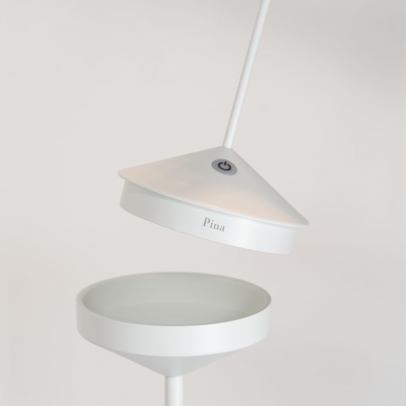 La lampada Pina si alloggia perfettamente nella parte superiore del supporto senza agganciarsi e può essere facilmente rimossa. Non funge da supporto di ricarica. Realizzato da Zafferano.