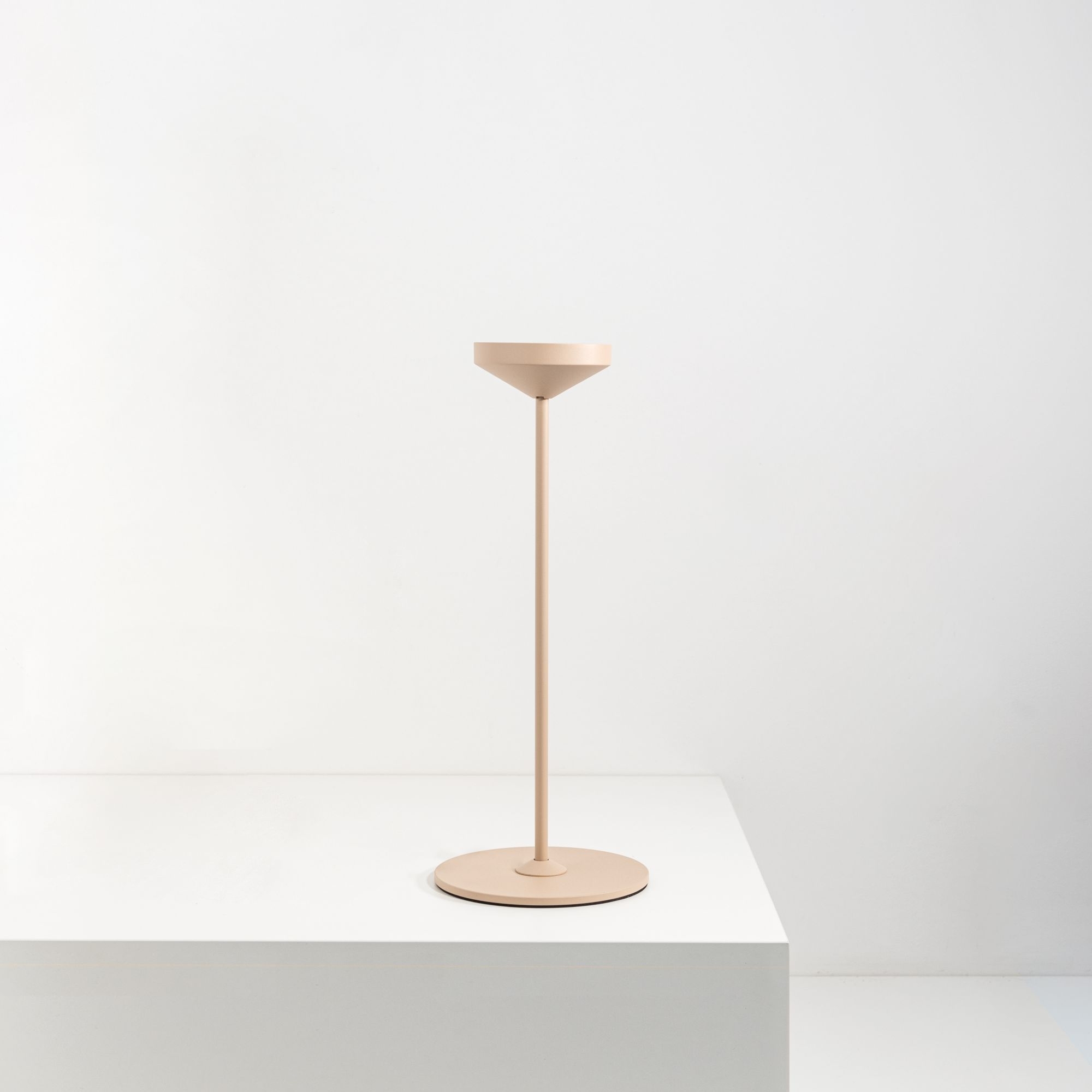 La lampada Pina si alloggia perfettamente nella parte superiore del supporto senza agganciarsi e può essere facilmente rimossa. Non funge da supporto di ricarica. Realizzato da Zafferano.
