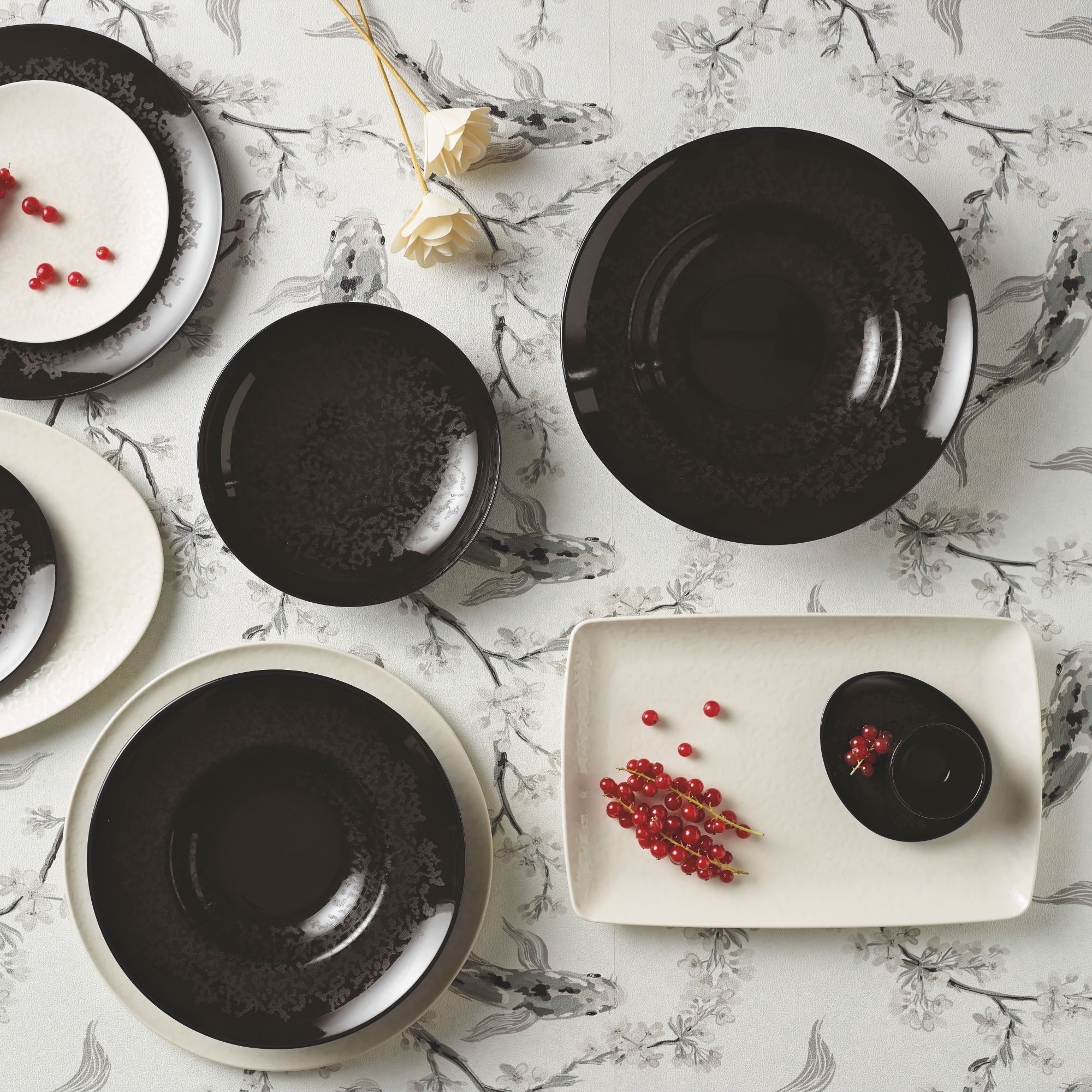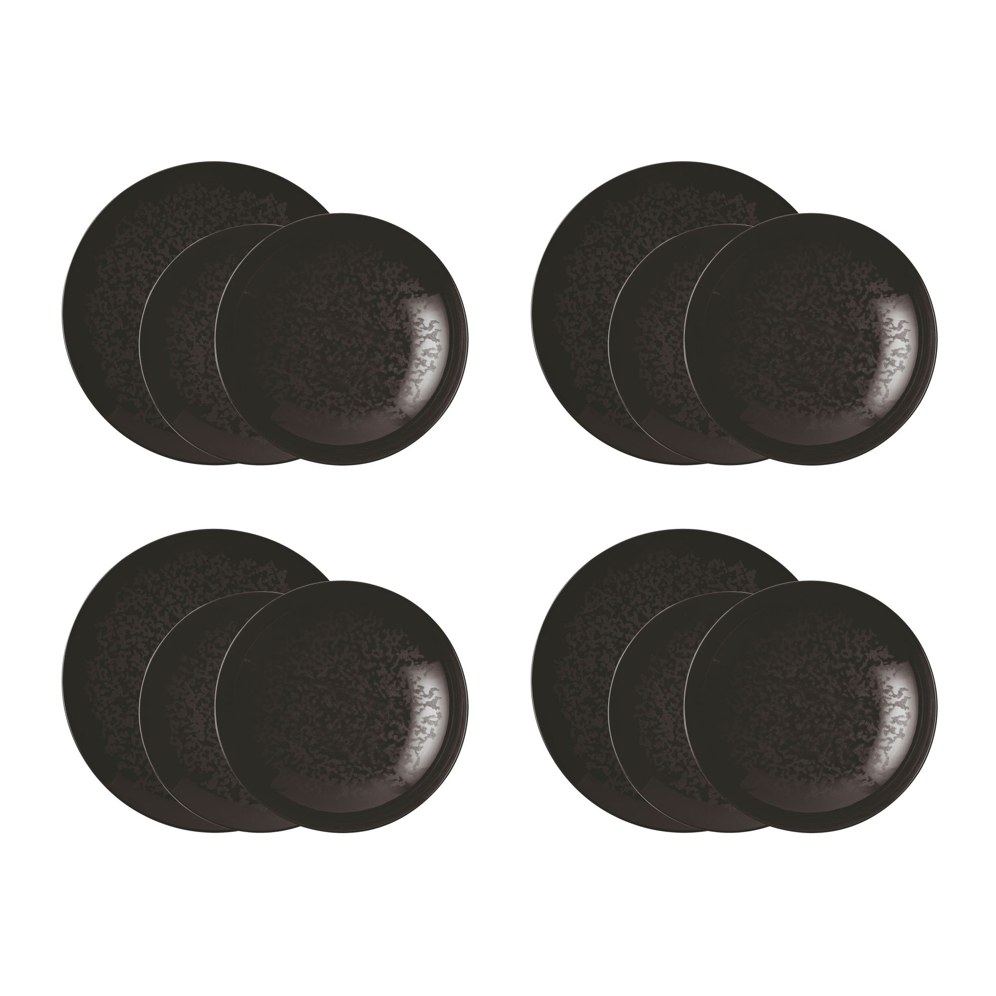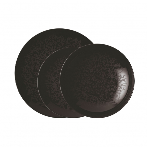 Servizio di 12 piatti della collezione Eclipse Night, realizzati in fine porcellana decorata. Il set comprende: