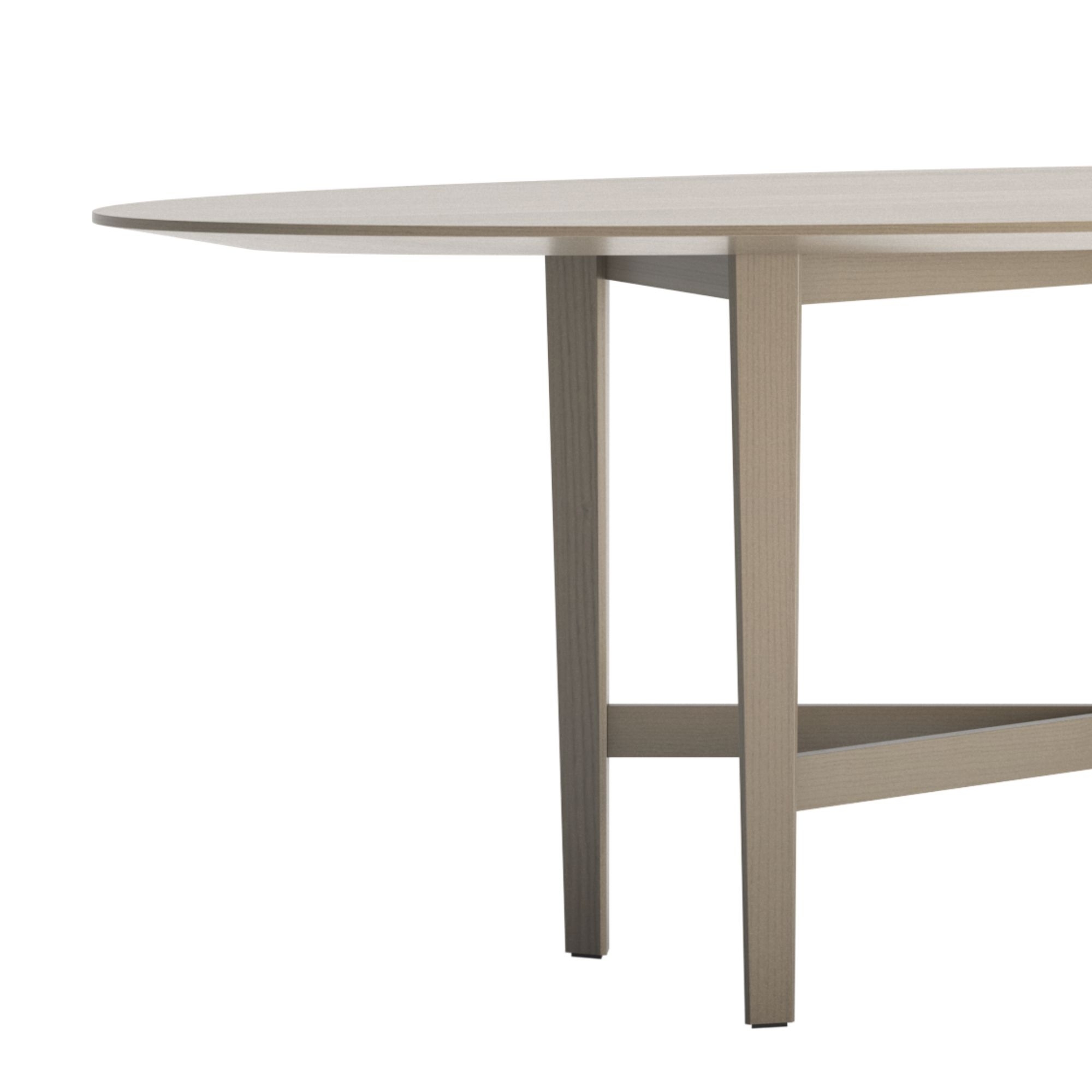 Tavolo ovale 215x95 cm, appartenente alla collezione Luigi Filippo, realizzato con piano in medium density con bordo rastremato (riduzione perimetrale dello spessore), gambe sagomate e crociera inferiore di controvento in faggio. Il tutto è disponibile nelle versioni laccato opaco o in essenza di frassino nei colori semitrasparenti. Moderno, raffinato e vivace, il tavolo Luigi Filippo si presenta con un design pulito ed equilibrato, in una combinazione romantica di eleganza e praticità. Disegnato da Marta Laudani e Marco Romanelli per BBB Italia.
