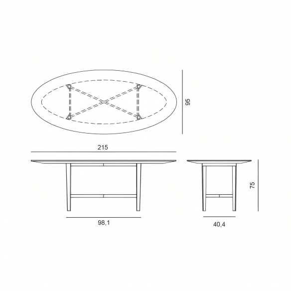 Dimensioni: Lunghezza 215 cm, Larghezza 95 cm, Altezza 75 cm