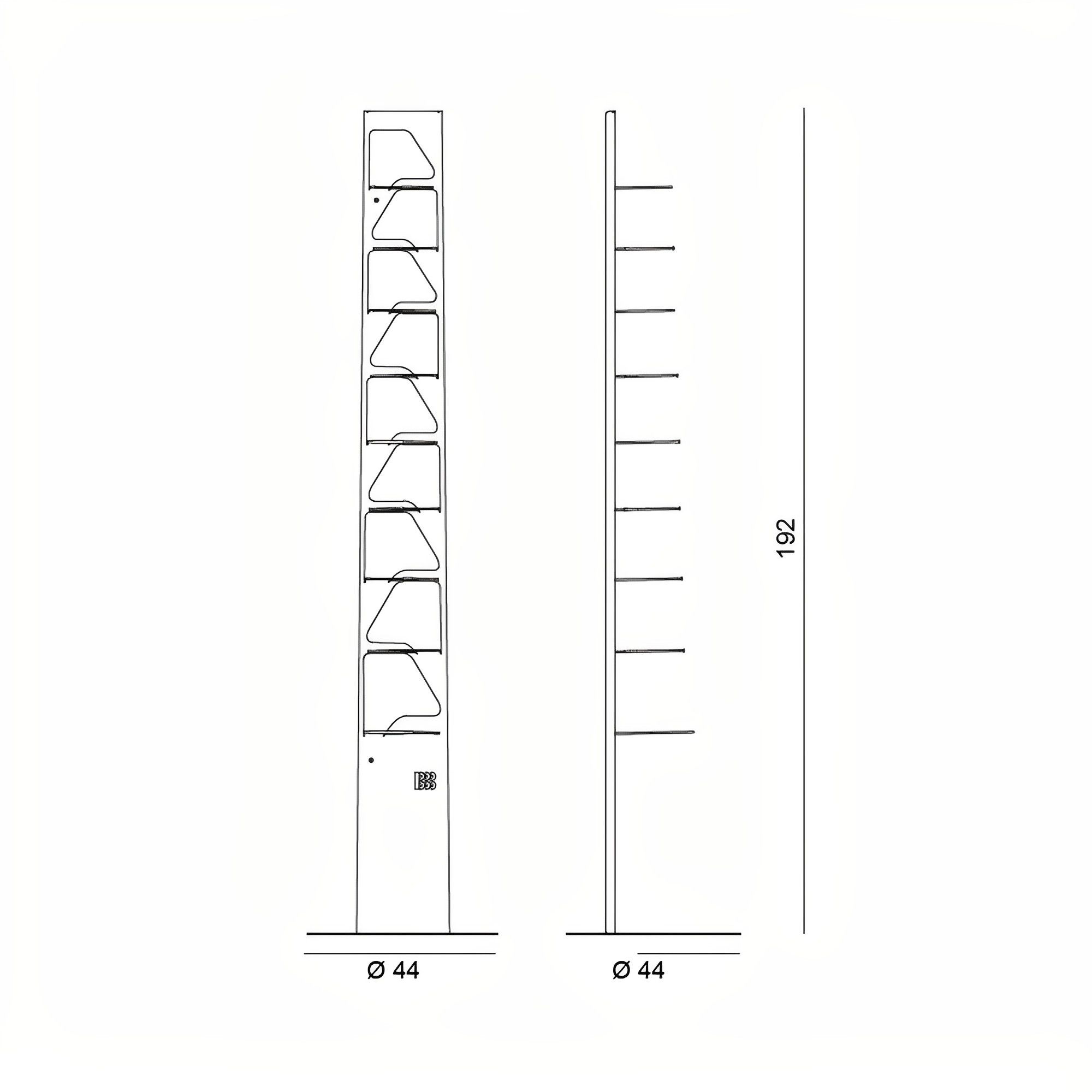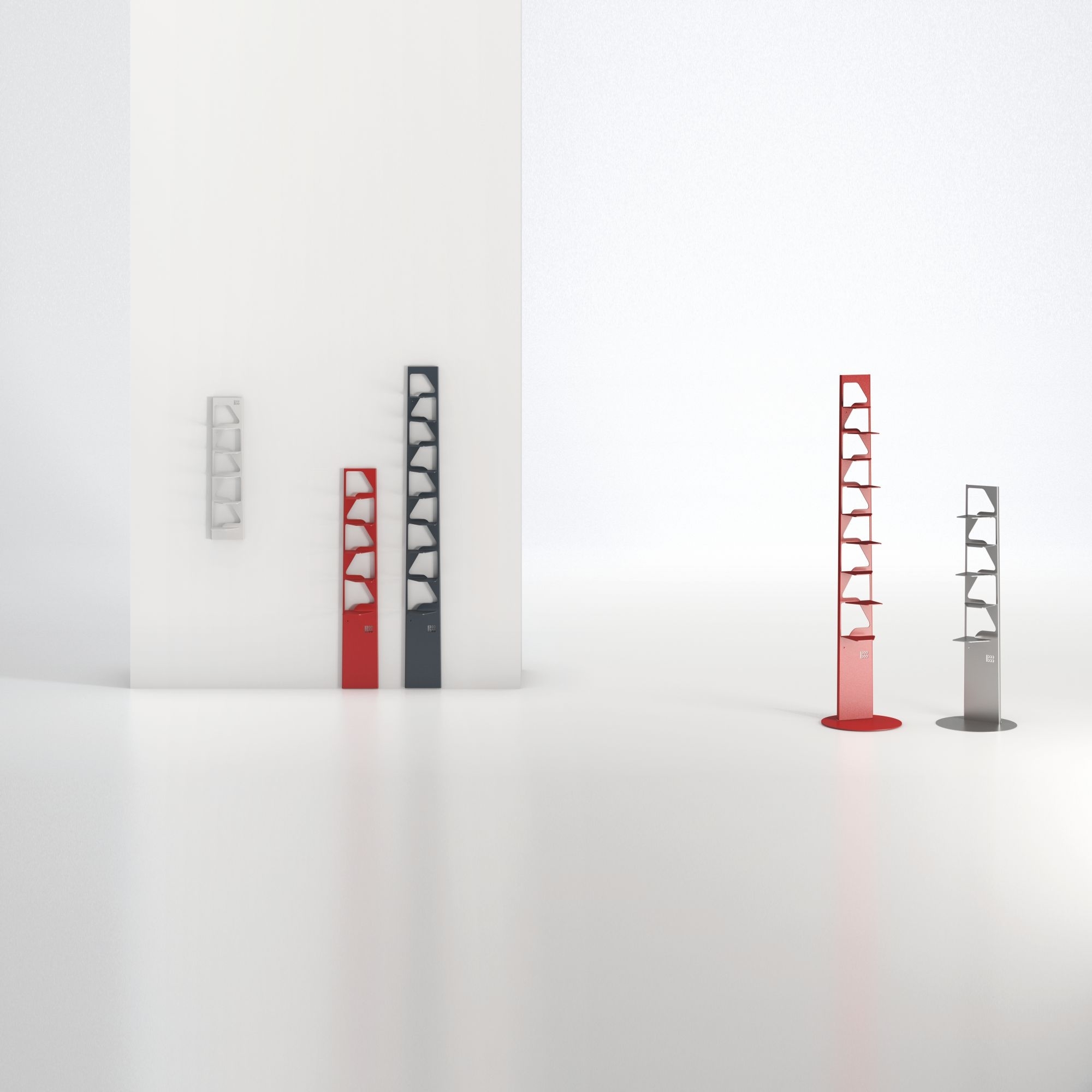 Libreria autoportante dall'altezza di 192 cm, appartenente alla collezione Neanderthal, realizzata in lamiera d’acciaio a forte spessore con mensole laserate. Colorata, ecclettica e dal design sofisticato, Neanderthal è una libreria in grado di inserirsi in ogni ambiente con leggerezza, donandogli un tocco di classe in più. Dispone di 9 mensole su livelli diversi, su cui posizionare la propria collezione di libri facendoli diventare parte integrante e decorativa della libreria stessa. Disegnata da Franco Poli per BBB Italia.