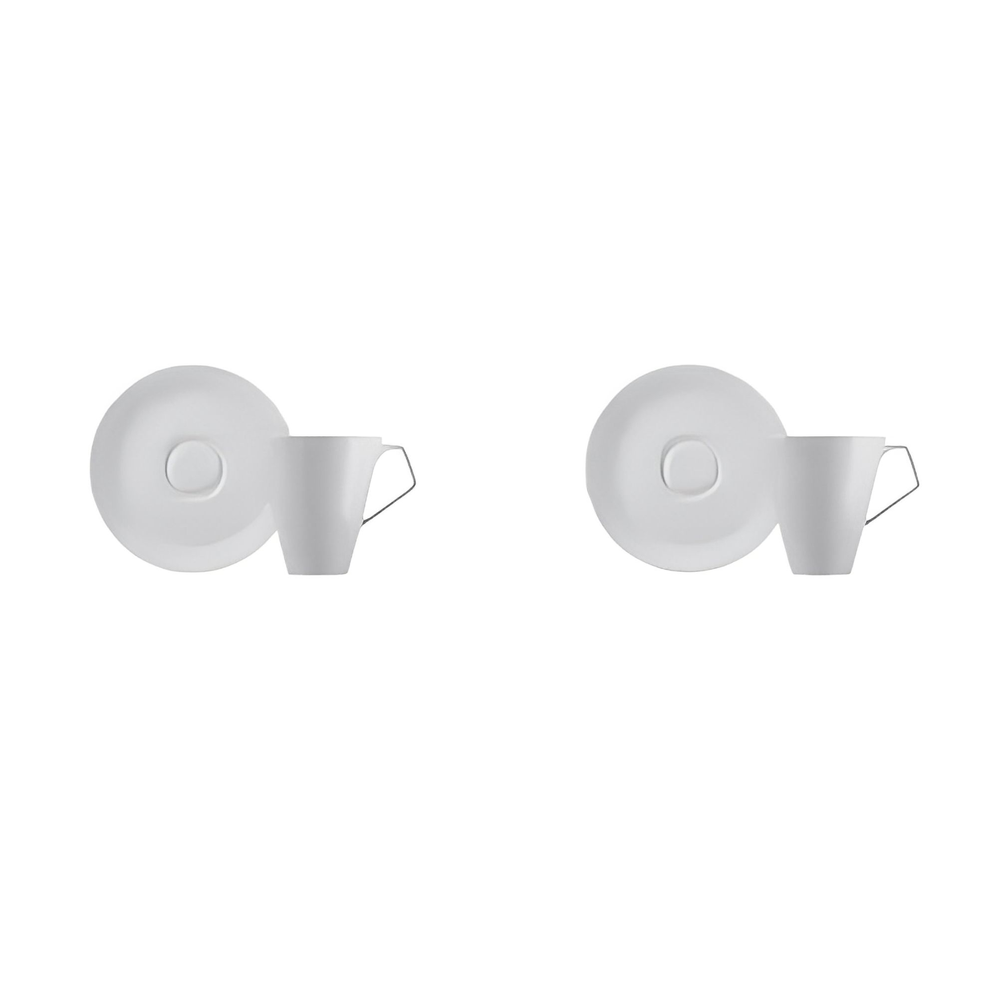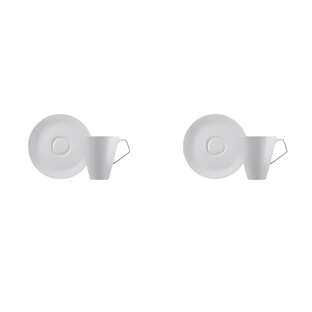 2 tazzine da caffè comprensive di piattino, appartenenti alla collezione Anatolia, realizzate in fine porcellana bianca. Caratterizzate da un design semplice, pulito e raffinato, le tazzine da caffè Anatolia ti permetteranno di conferire alla tua tavola uno stile unico. Il manico delle tazzine ha una forma particolare, progettata per una presa pratica e sicura. Disegnate da Antonia Astori per Driade.