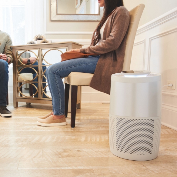 Purificatore d'aria AP200 disponibile nelle colorazioni nero e bianco. Ideale per ambienti di dimensioni ridotte come uffici o camerette, il purificatore d'aria AP100 filtra l'aria 5 volte all'ora in un'area di 21 m² e una volta all'ora in un'area di 106 m². Dispone di un filtro attivo in cartone che rimuove il 99,99% delle particelle presenti nell'aria di polvere, polline e altri allergeni.