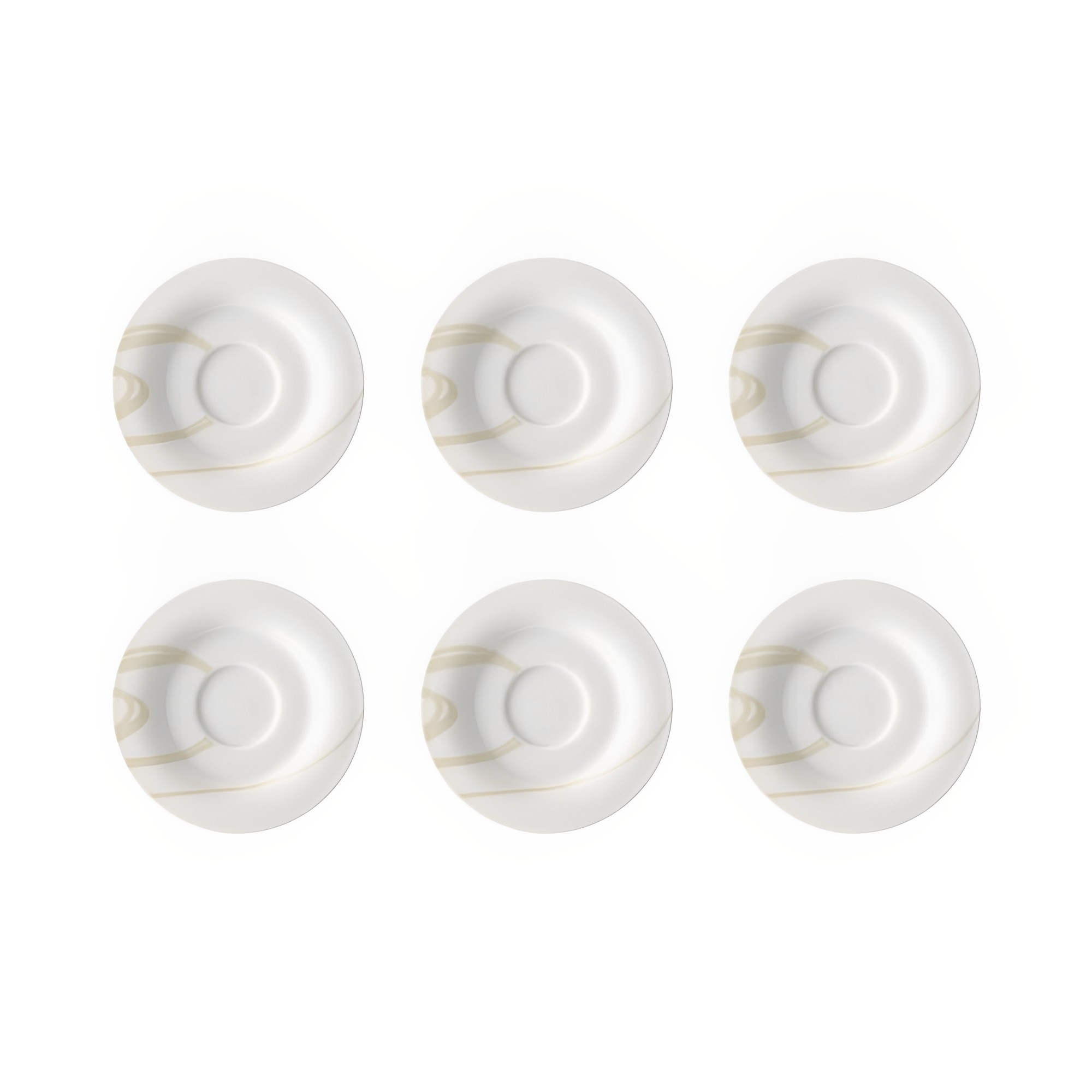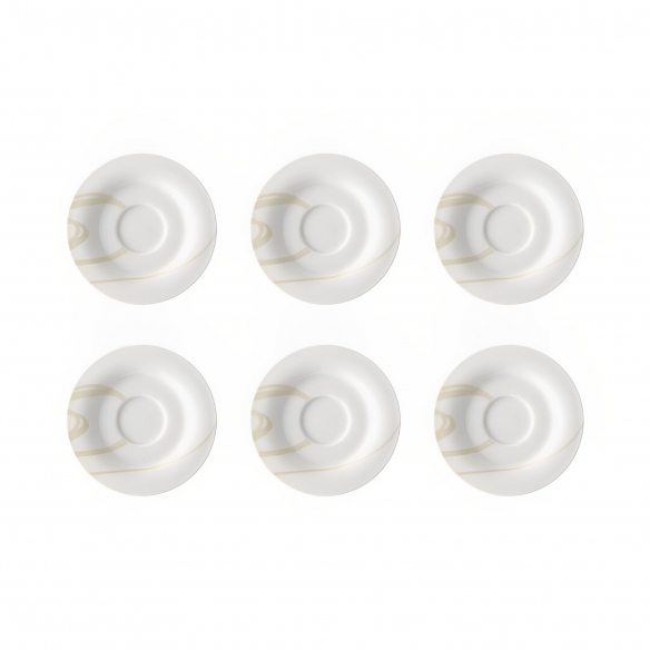 6 piattini da caffè dal diametro di 13 cm, appartenenti alla collezione Move Feeling, realizzati in finissima porcellana decorata. Eleganti, moderni e raffinati, i piattini da caffè Move Feeling si contraddistinguono per i fantastici motivi beige. Forme moderne piene di sottigliezza e raffinatezza. Realizzati da Rosenthal.