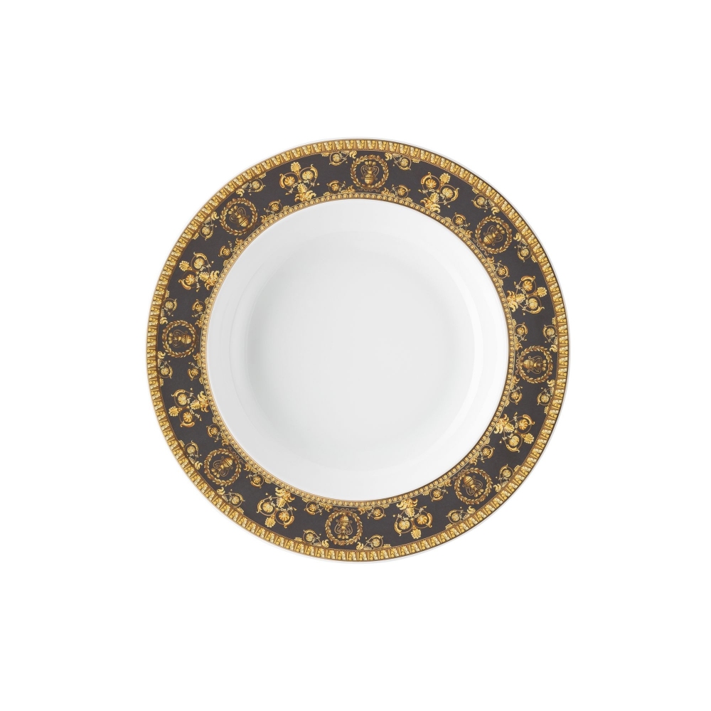 Piatto fondo dal diametro di 22 cm, appartenente alla collezione I Love Baroque, realizzato in finissima porcellana decorata. Dall'eleganza senza tempo, questo esclusivo accessorio della collezione I Love Baroque si contraddistingue per la ricchezza e raffinatezza delle decorazioni, i colori intensi e per la purezza della porcellana. I Love Baroque reinventa il quotidiano permettendoci di creare una tavola ricercata, elegante e ricca di personalità. Realizzato da Rosenthal Versace.