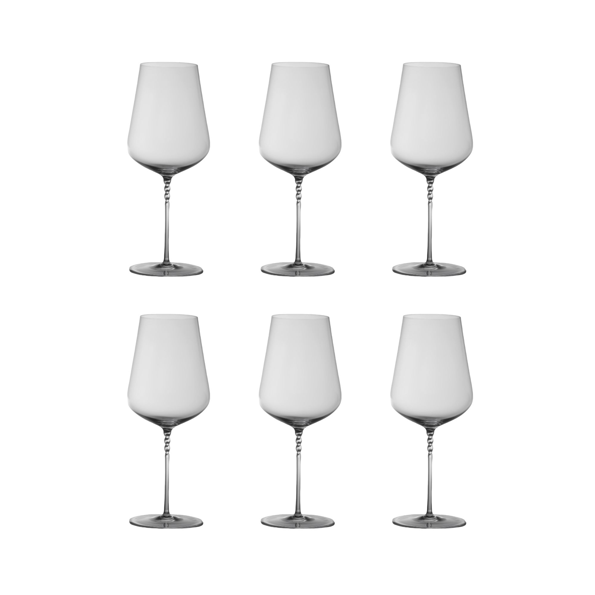 Set di 6 calici da 87 cl, appartenenti alla collezione JCL, realizzati a mano e soffiati a bocca in vetro sonoro superiore. Progettati per degustare vini grintosi, corposi e intensi, ma in grado di accogliere tutti i tipi di vino rosso, questi splendidi calici hanno un corpo piuttosto ampio, per consentire la giusta ossigenazione di vini rossi lungamente affinati in bottiglia. Molto raffinati nel design, i calici JCL sono perfetti per tutte le occasioni. Si consiglia di servire il vino a 18°C. Disegnati da Jeannie Cho Lee per Zafferano.