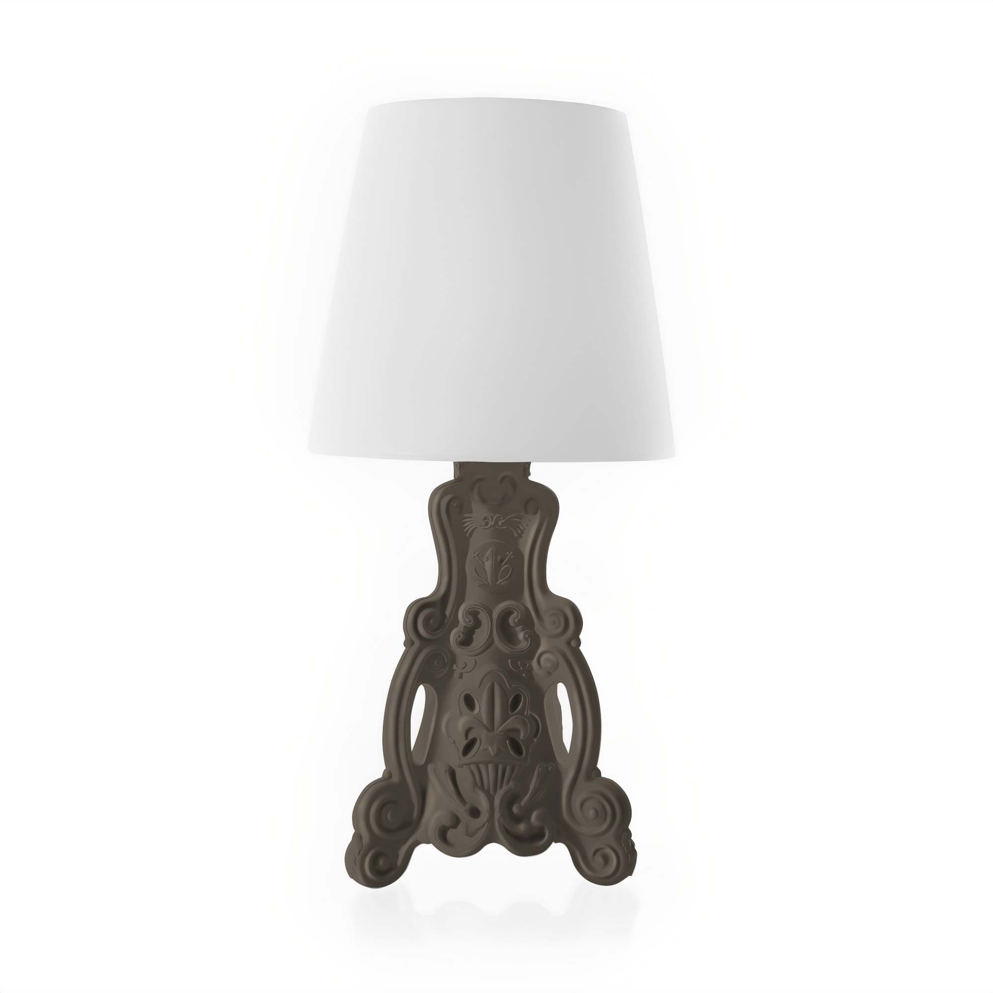 Lampada da Tavolo appartenente alla collezione Lady of Love, realizzata in polietilene. Con un perfetto equilibrio tra luce e ombra, la lampada Lady of Love rende più accogliente ogni tuo spazio abitativo, attirando l'attenzione verso le aree più degne di nota. Disponibile nelle splendide versioni bianco, rosso e nero, la base della lampada si contraddistingue per le trame intricate e l'abbondanza ornamentale, reminiscente dell'eccentricità dell'estetica barocca. Scegli Lady of Love e porta nuova energia ai tuoi ambienti. Progettata da Moro e Pigatti per Slide.