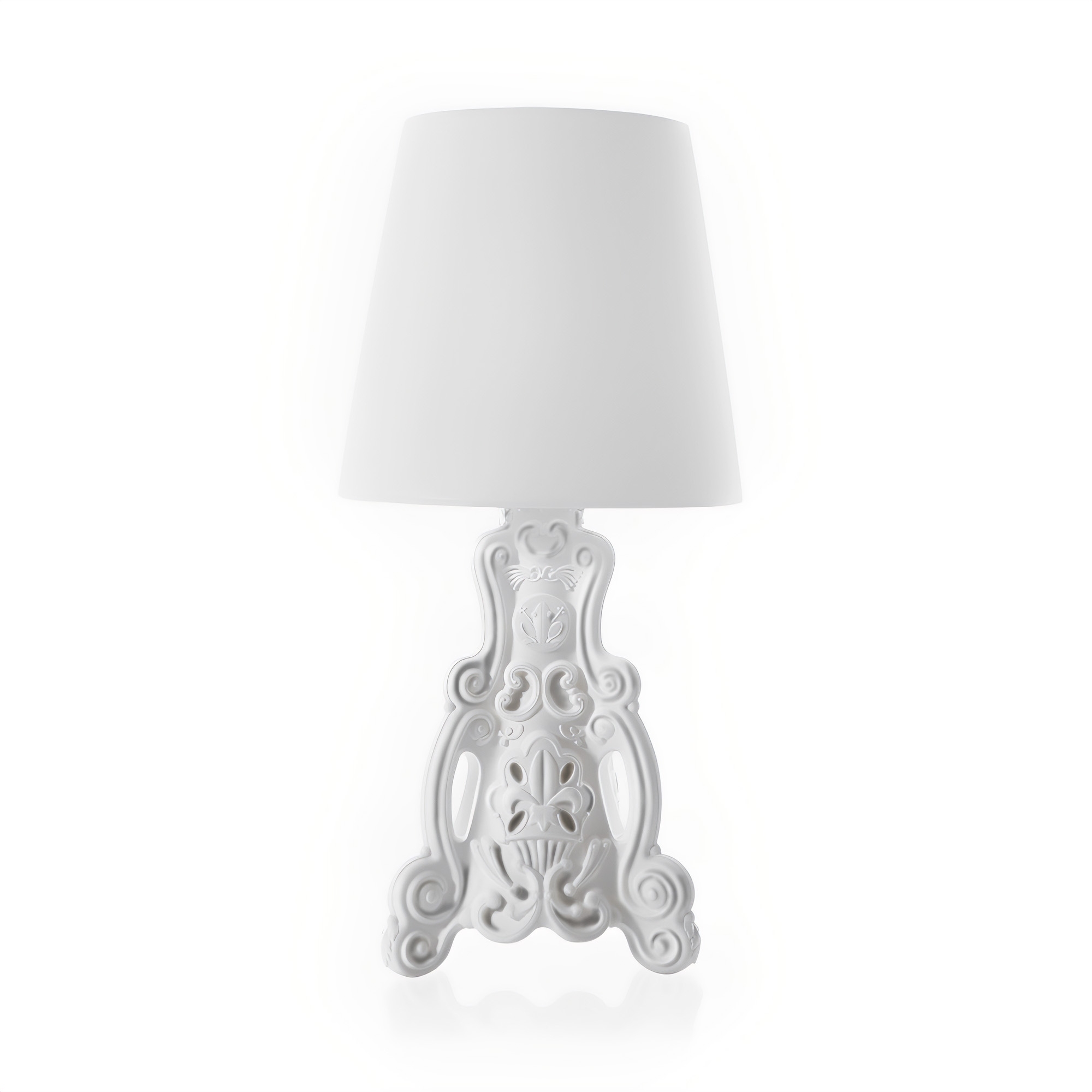 Lampada da Tavolo appartenente alla collezione Lady of Love, realizzata in polietilene. Con un perfetto equilibrio tra luce e ombra, la lampada Lady of Love rende più accogliente ogni tuo spazio abitativo, attirando l'attenzione verso le aree più degne di nota. Disponibile nelle splendide versioni bianco, rosso e nero, la base della lampada si contraddistingue per le trame intricate e l'abbondanza ornamentale, reminiscente dell'eccentricità dell'estetica barocca. Scegli Lady of Love e porta nuova energia ai tuoi ambienti. Progettata da Moro e Pigatti per Slide.