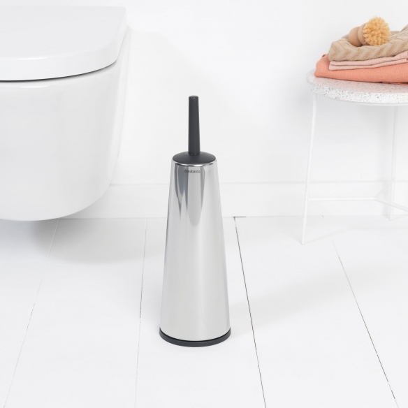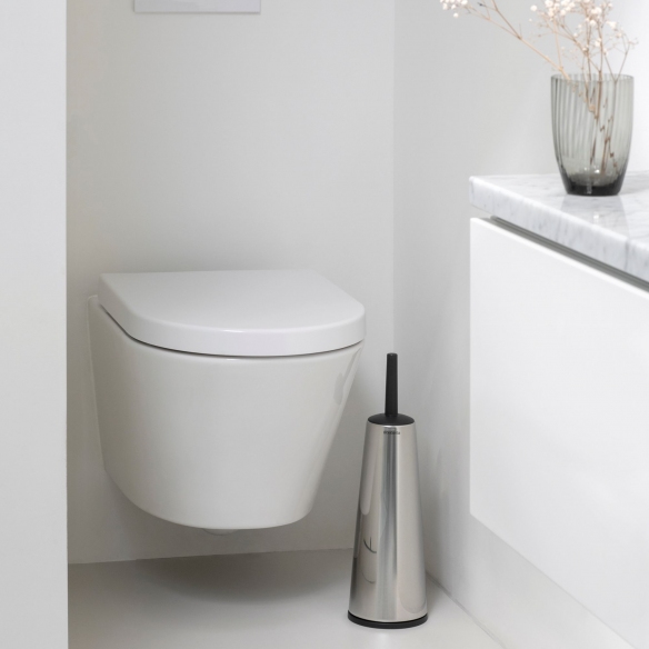 Spazzola per WC appartenente alla collezione ReNew, realizzata con porta spazzola in acciaio verniciato e scopino in plastica. Ideale per un'igiene accurata dei sanitari, la spazzola per WC ReNew è molto facile da pulire e svuotare: basterà sollevare il supporto e versare l'acqua in eccesso. Il design è molto intelligente: tiene nascosto lo scopino ma lo rende pronto all'uso. Una piacevole aggiunta a qualsiasi stanza da bagno. Realizzata da Brabantia.