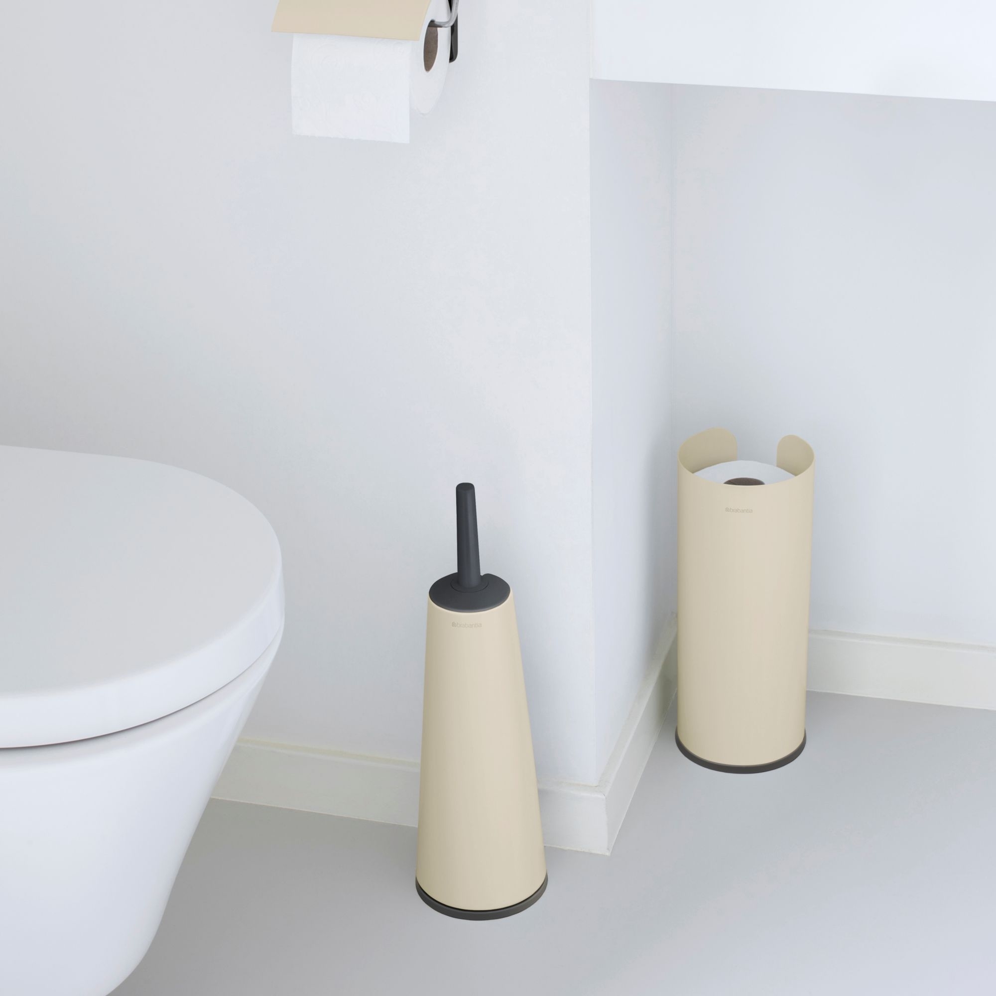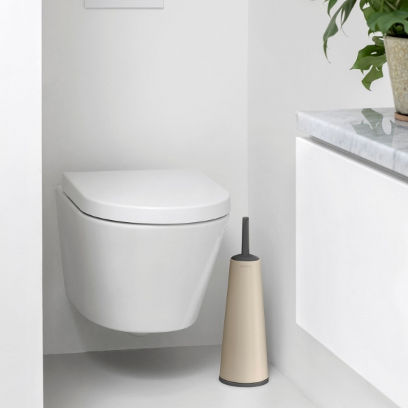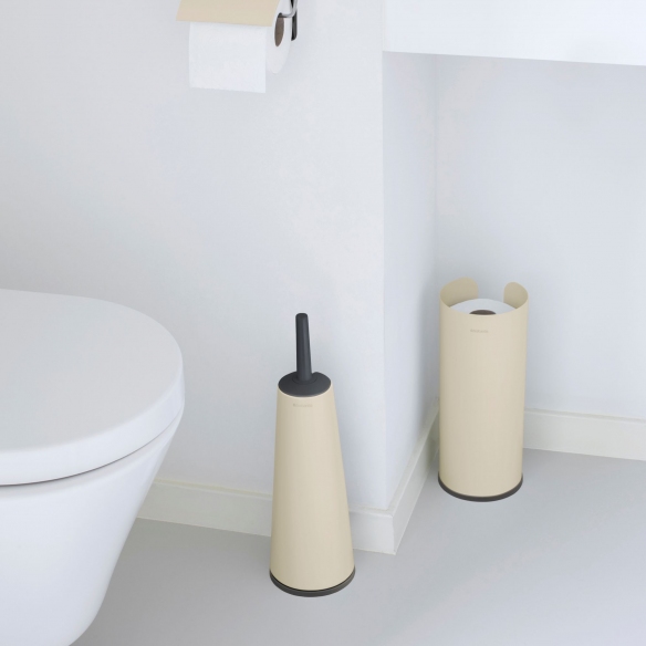 Spazzola per WC appartenente alla collezione ReNew, realizzata con porta spazzola in acciaio verniciato e scopino in plastica. Ideale per un'igiene accurata dei sanitari, la spazzola per WC ReNew è molto facile da pulire e svuotare: basterà sollevare il supporto e versare l'acqua in eccesso. Il design è molto intelligente: tiene nascosto lo scopino ma lo rende pronto all'uso. Una piacevole aggiunta a qualsiasi stanza da bagno. Realizzata da Brabantia.