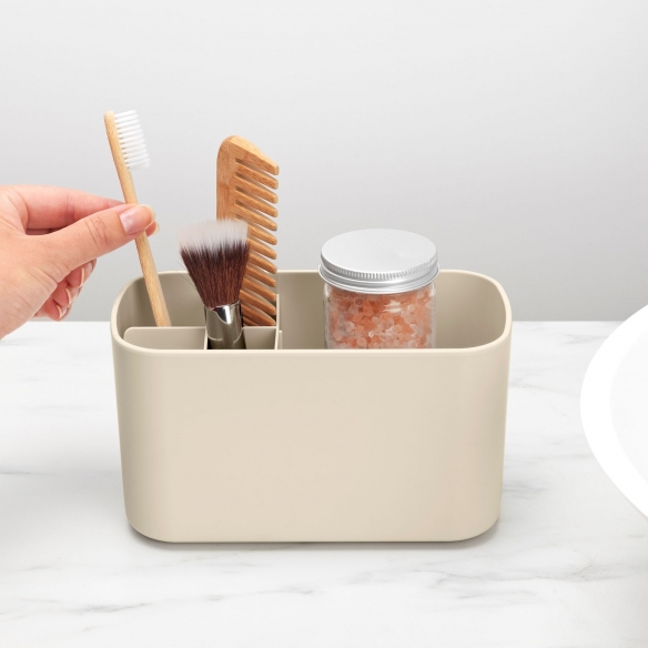 Organizer da bagno appartenente alla collezione ReNew, realizzato in resina termoplastica. Disponibile in 3 versatili finiture di colore, l'organizer da bagno ReNew è caratterizzato da un design compatto ed elegante, perfetto per qualsiasi stanza da bagno. Che tu ti stia prendendo cura della tua pelle, della tua igiene orale o dei tuoi capelli, l'organizer da bagno ReNew ti permetterà di avere sempre gli accessori a portata di mano! Il materiale con cui è realizzato è molto resistente e duraturo nel tempo. Realizzato da Brabantia.