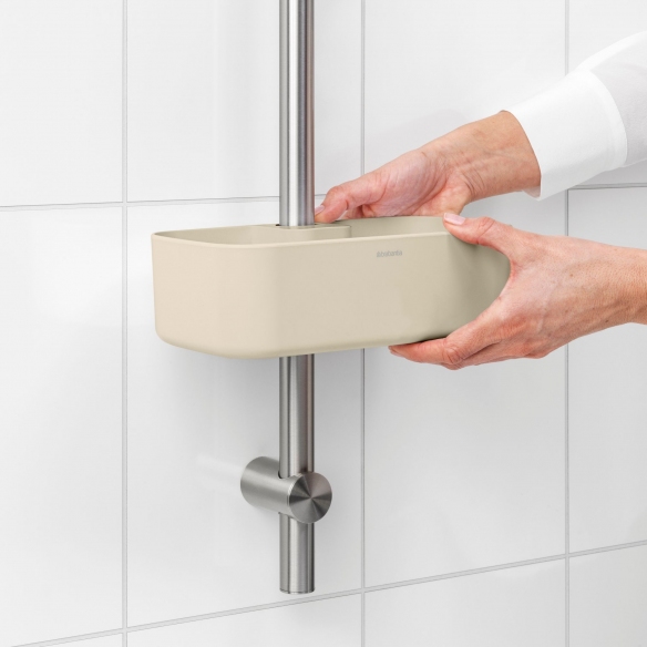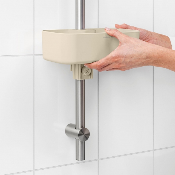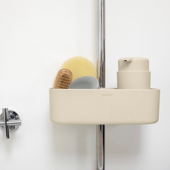 Portaoggetti da doccia appartenente alla collezione ReNew, realizzato in resina termoplastica. Disponibile in 3 versatili finiture di colore, il portaoggetti da doccia ReNew è perfetto per contenere shampoo, bagnoschiuma, spugne, rasoi e qualsiasi altro oggetto per la cura della persona. Facilmente fissabile all'asta della doccia e regolabile a piacimento, ti aiuterà a mantenere in ordine il tuo bagno! Realizzato da Brabantia.