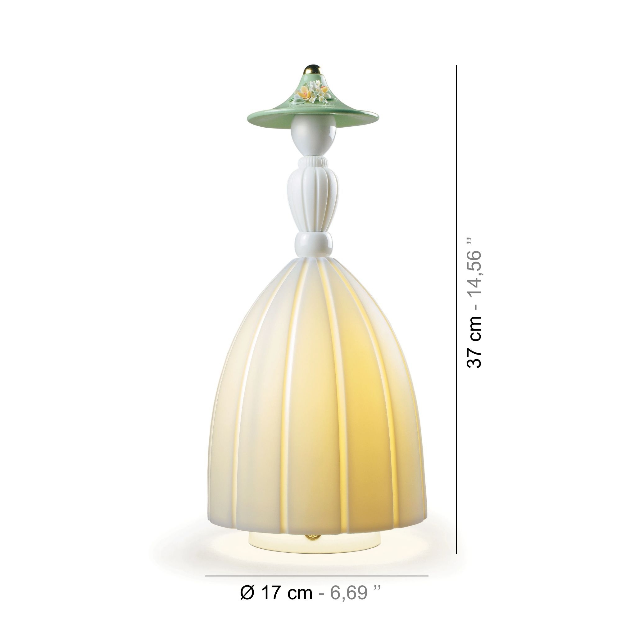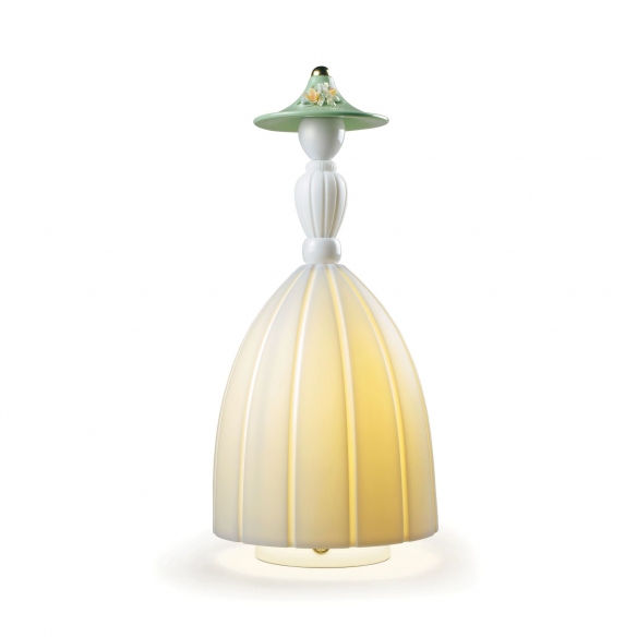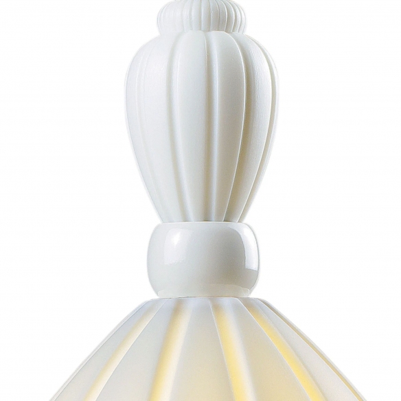 Lampada da tavolo Mademoiselle Daniela in porcellana. Mademoiselle Daniela è una lampada da tavolo dal design squisitamente romantico. Il corpo della lampada echeggia e stilizza una silhouette femminile che infonde un tocco di eleganza senza tempo ad un oggetto unico nel suo genere. La porcellana in tinta monocromatica gioca su un piacevole contrasto tra opacità e lucentezza, donando ulteriore raffinatezza. Realizzata da Lladró