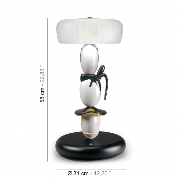 Lampada da tavolo Hairstyle H/I/M in porcellana, dall’altezza di 58 cm. Hairstyle è una lampada che trae il suo potenziale espressivo da una terra ricca di fascino, quanto lontana e la racconta sulla porcellana di alta qualità. Hairstyle offre un design elegante e ricercato che gioca sul contrasto tra la purezza della porcellana bianca e il fascino intramontabile del nero. Il paralume si ispira al tradizionale copricapo giapponese, il kasa, indossato dai samurai e completa un design unico. Realizzata da Lladró