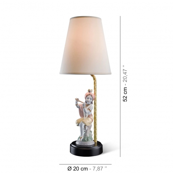 Lampada da tavolo Piccolo Lord Krishna in porcellana lucida. Piccolo Lord Krishna è una lampada da tavolo che subisce il fascino esotico dell’Antico Oriente. Il corpo della lampada è un’opera d’arte e ospita un magnifico elemento scultoreo che rende omaggio alla religione del Veda. Un vero pezzo di design, rivolto a chi ama la bellezza dell’arte. Realizzata da Lladró