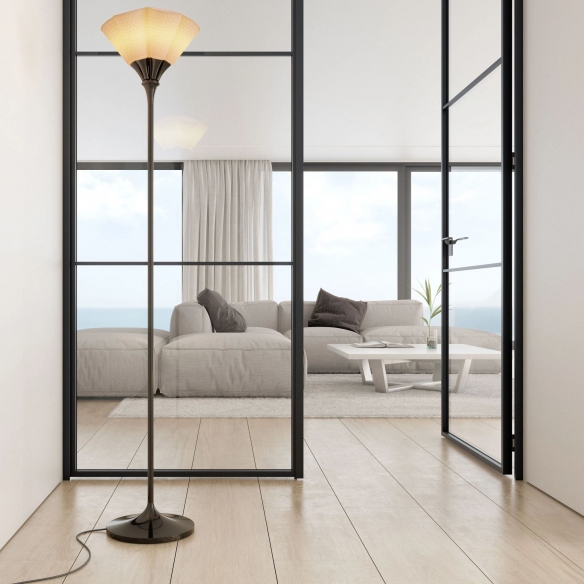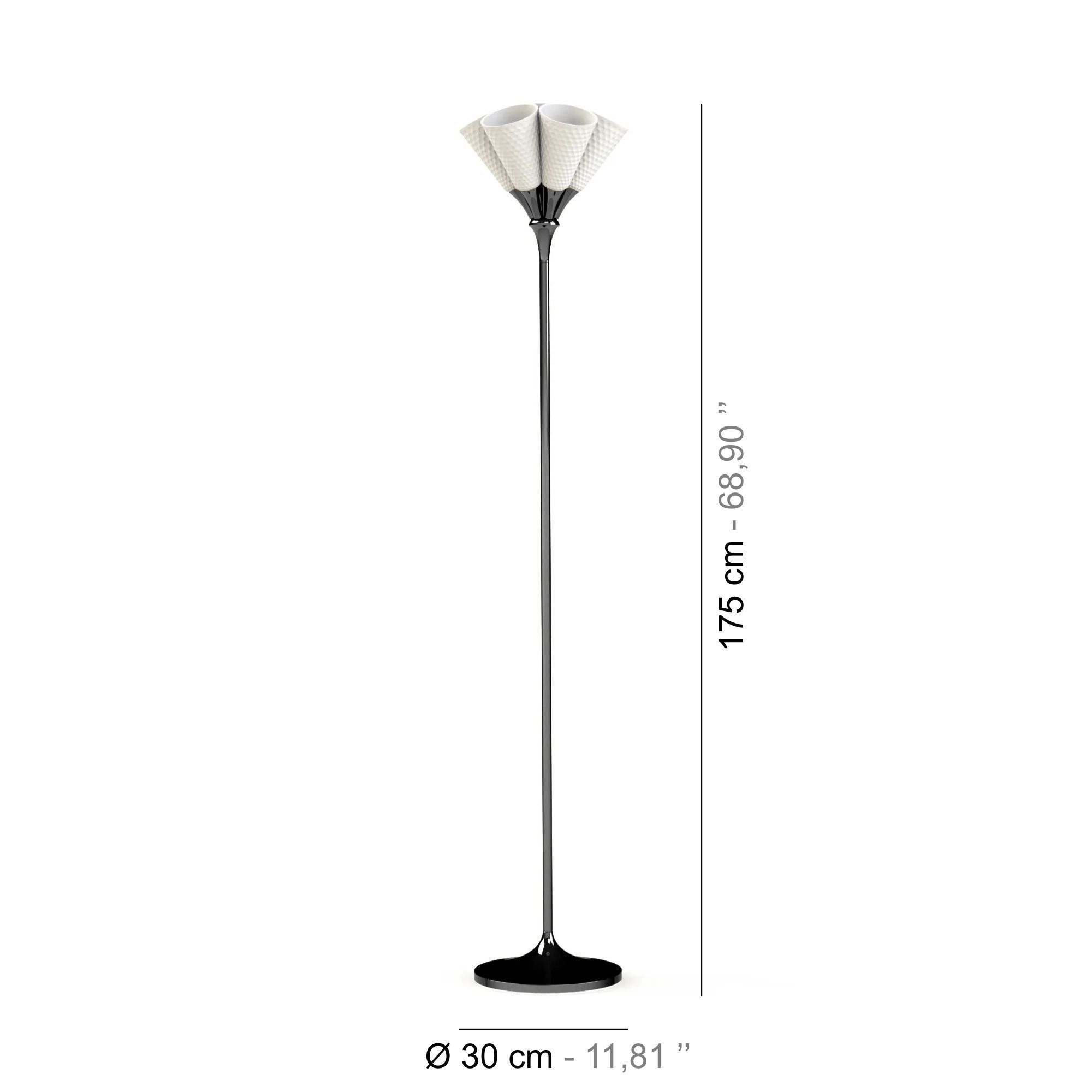 Lampada da terra Jamz. Jamz è una lampada che nasce dall’amore per il mondo dell’arte, considerata in tutte le sue sfumature. La lampada offre un design elegante con corpo realizzato in metallo ramato, in oro o in nero. Un oggetto sofisticato che celebra la bellezza della porcellana, la cui peculiarità sta nella ricercatezza del paralume. Jamz è offerta in oro, rame e nero e si inserisce in modo impeccabile in interni dal gusto moderno. Realizzata da Lladró