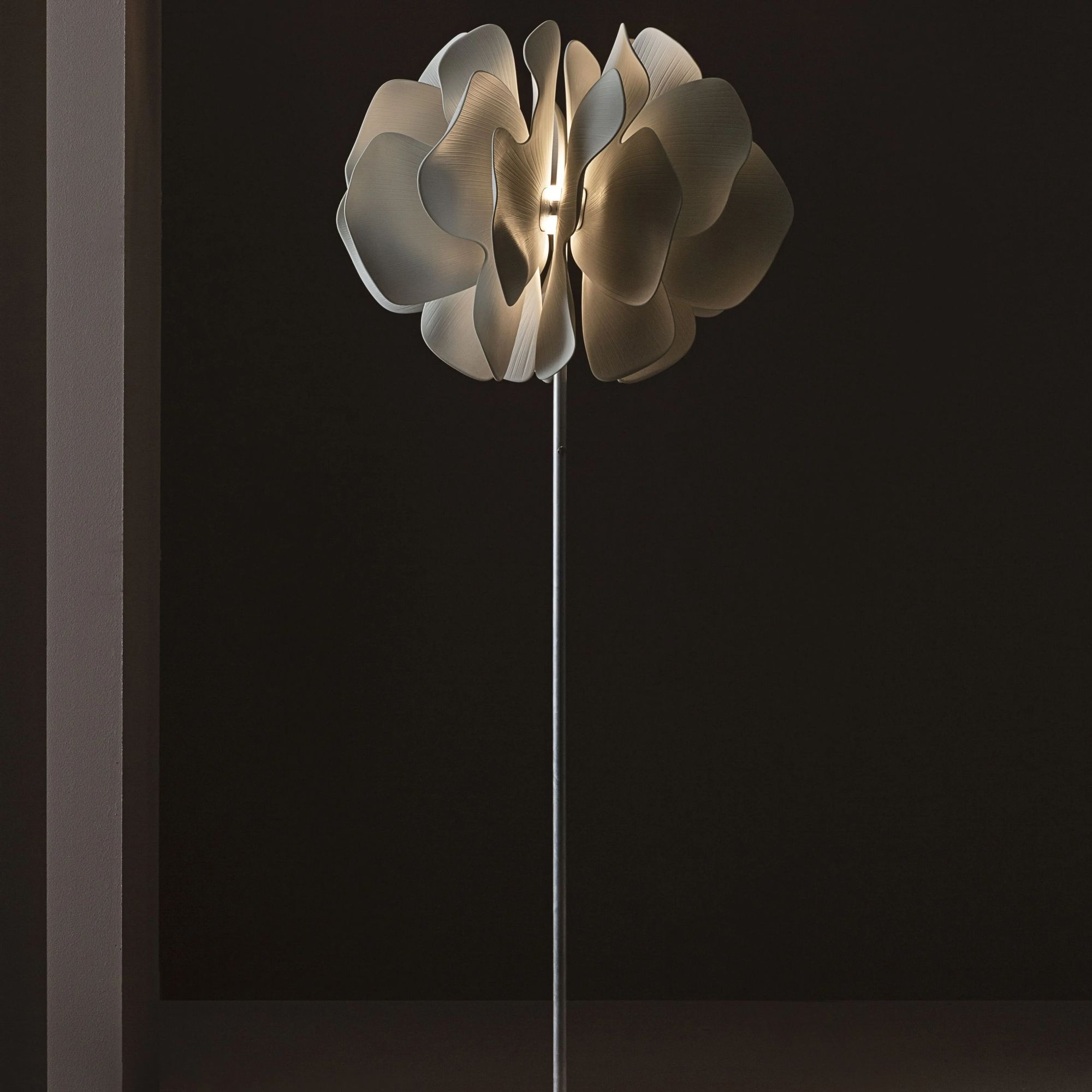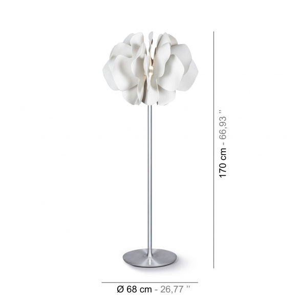Lampada da terra Nightbloom con un'altezza di 170 cm, realizzata in porcellana. Nightbloom è una collezione nata dalla mente creativa del designer olandese Marcel Wanders. Il design della lampada si ispira all’amore per l’arte e per la natura ed è impreziosito da un piacevole contrasto cromatico tra il bianco opaco della porcellana e gli ornamenti in oro lucido. Nightbloom è una lampada che celebra la bellezza della porcellana artigianale, sapientemente decorata per affascinare fin dal primo sguardo. Realizzata da Lladró