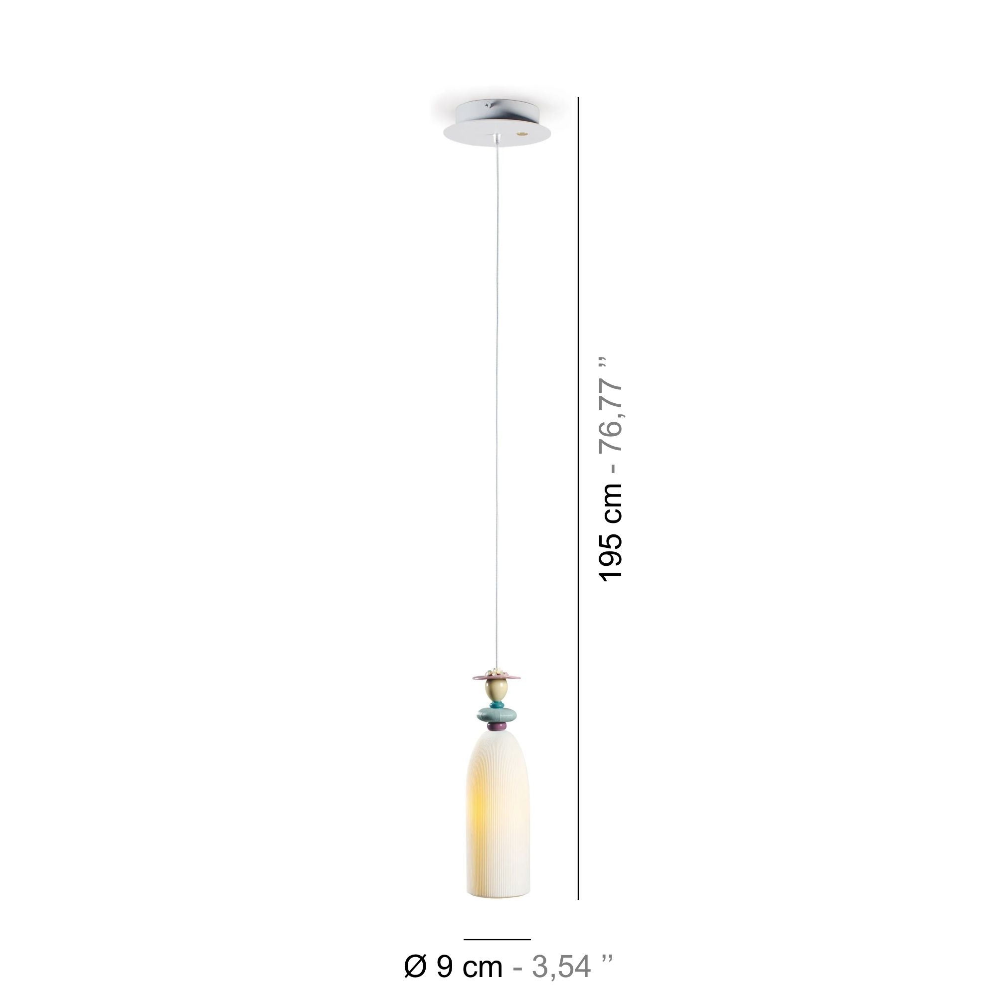 Lampada a sospensione Mademoiselle Célia in porcellana. Mademoiselle Célia è una lampada che cattura l’essenza di un’anima romantica e con le sue forme sinuose e delicate è capace di creare un’atmosfera sognante ed etera. Il corpo si ispira alla bellezza e al mistero della donna ed è impreziosito da dettagli che evocano femminilità e romanticismo. Mademoiselle è un complemento d’arredo decisamente unico e speciale che enfatizza la preziosità della porcellana e che ama essere ammirato. Realizzata da Lladró