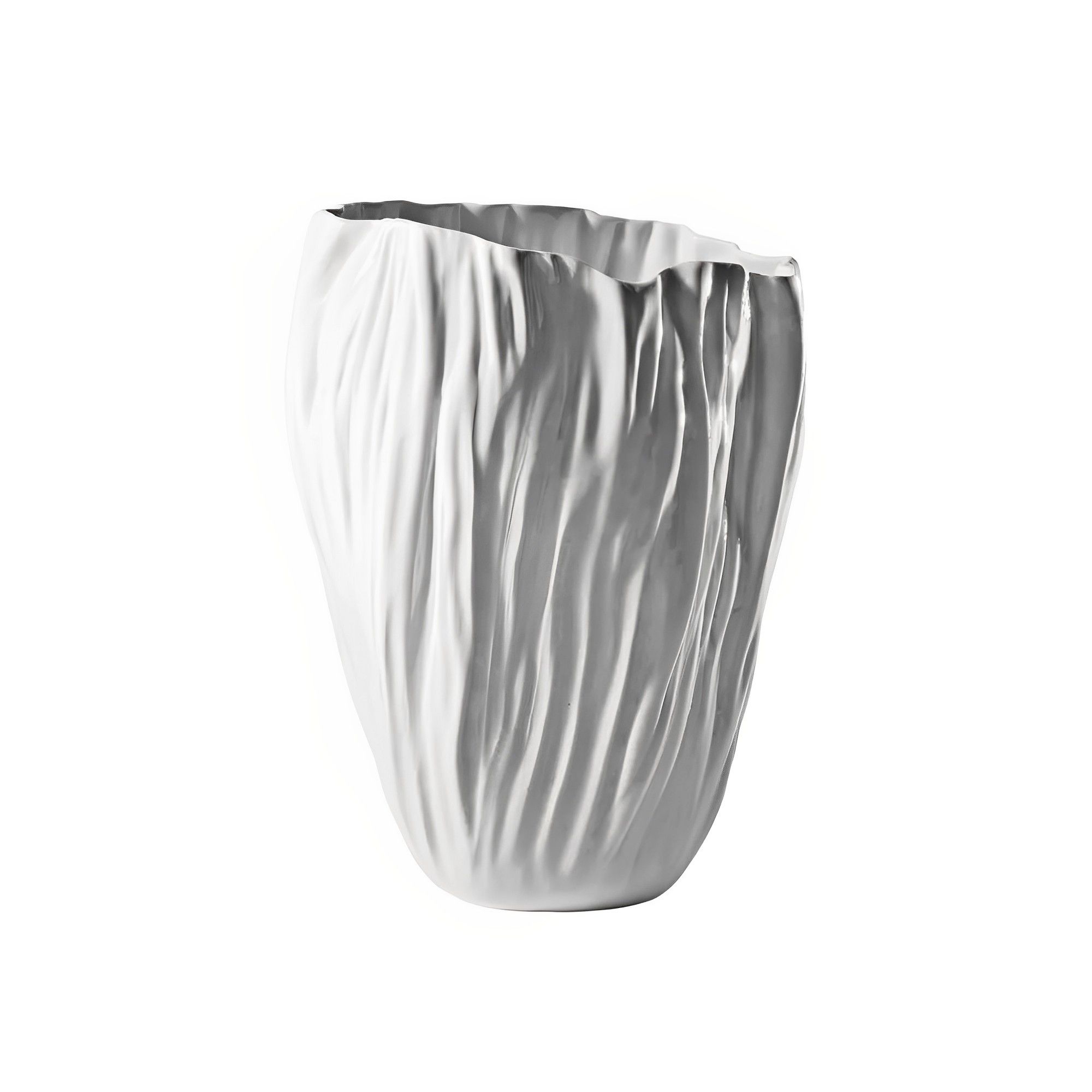 Vaso Adelaide IV in porcellana bianca bone china. Sorprendentemente mutevole e sempre nuovo, questo vaso è qualcosa di meraviglioso da usare e da esporre. Linee curve e delicate fluiscono senza soluzione di continuità sulla sua superficie e sembrano incresparsi quando la luce splende su di esse, dando vita a un suggestivo effetto ondulato, bello da guardare e unico al tatto. Ha un colore bianco tenue e una texture semplicemente affasciante in grado di valorizzare la porcellana in tutta la sua bellezza, fragilità e purezza. Disegnato da Xie Dong per Driade