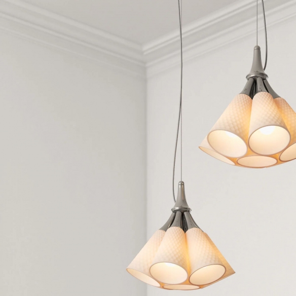 Lampada a sospensione Jamz. Jamz è una lampada che nasce dall’amore per il mondo dell’arte, considerata in tutte le sue sfumature. La lampada offre un design elegante con corpo realizzato in metallo ramato, in oro o in nero. Un oggetto sofisticato che celebra la bellezza della porcellana, la cui peculiarità sta nella ricercatezza del paralume. Jamz è offerta in rame, oro e nichel nero e arreda in modo impeccabile interni dal gusto moderno. Realizzata da Lladró