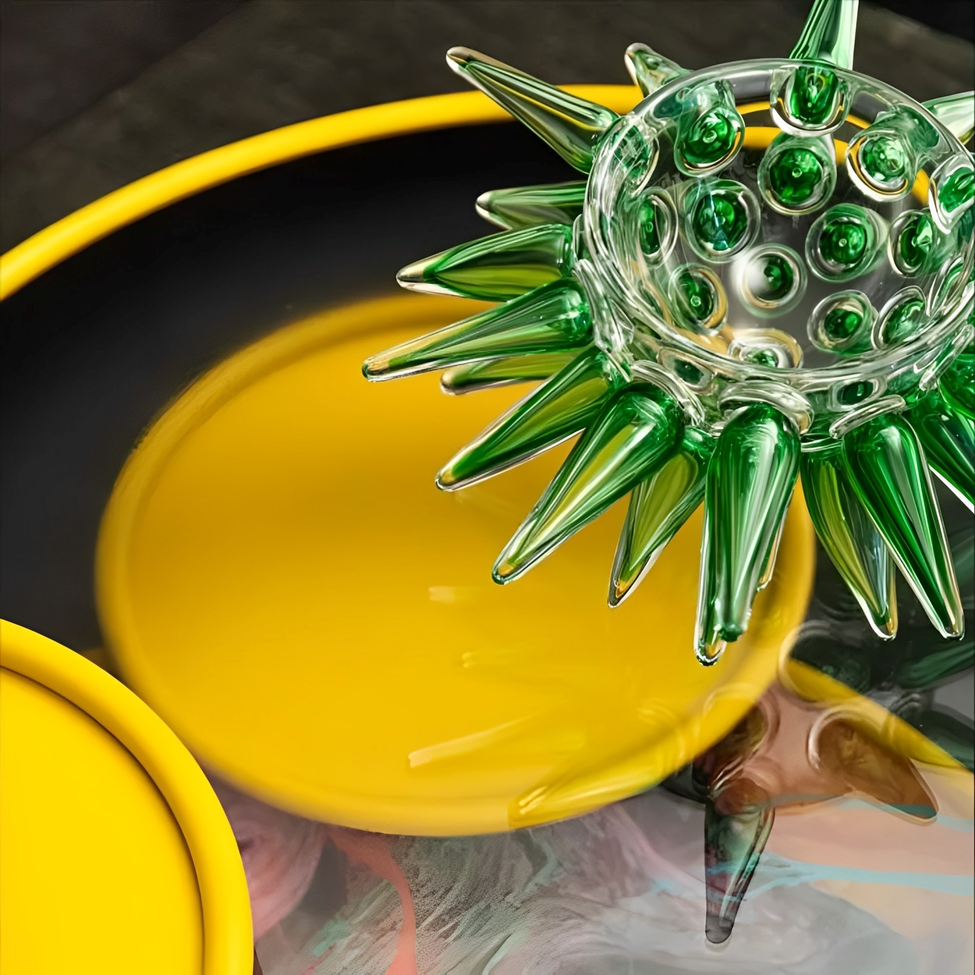 Centrotavola Pino in vetro soffiato trasparente dall'altezza di 20 cm. Elegantemente progettato, il centrotavola vanta un design di suggestiva originalità, frutto di una sensibilità moderna, che esplora le potenzialità del vetro con forme nuove, colori vivaci e combinazioni azzardate. È accuratamente lavorato a mano e squisitamente dettagliato; in sostanza, un connubio perfetto tra arte e fascino che si traduce in un complemento d’arredo decisamente unico e indimenticabile in grado di aggiungere un tocco di personalità e intrigo a qualsiasi spazio. Disegnato da Borek Sipek per Driade