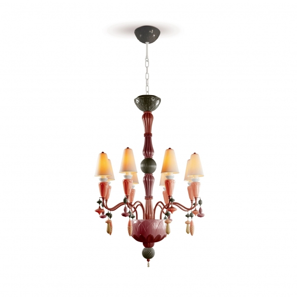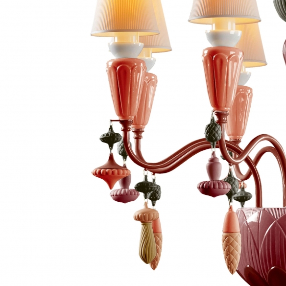 Lampada a sospensione Ivy and Seed a 8 luci in porcellana. Ivy and Seed è un’opera d’arte bella e significativa che utilizza una tavolozza di colori calda e terrosa per creare un effetto sorprendente. Sospeso da una semplice catena, il suggestivo corpo illuminante è composto da decine di delicati baccelli in porcellana. Quando sono illuminati, i baccelli emetto un bagliore morbido e caldo, perfetto per creare un ambiente rilassante. Con il suo design intricato e la delicata costruzione in porcellana, questa lampada è sicura di impressionare e arreda e illumina con solenne eleganza. La lampada è offerta nelle versioni: bianco, spezie, rosso corallo, bianco-oro, oceano e nero. Realizzata da Lladró