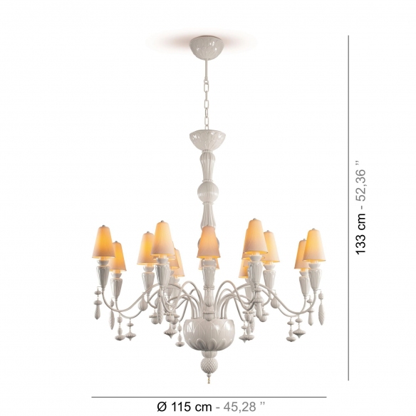 Lampada a sospensione Ivy and Seed a 16 luci in porcellana. Ivy and Seed è un’opera d’arte bella e significativa che utilizza una tavolozza di colori calda e terrosa per creare un effetto sorprendente. Sospeso da una semplice catena, il suggestivo corpo illuminante è composto da decine di delicati baccelli in porcellana. Quando sono illuminati, i baccelli emetto un bagliore morbido e caldo, perfetto per creare un ambiente rilassante. Con il suo design intricato e la delicata costruzione in porcellana, questa lampada è sicura di impressionare e arreda e illumina con solenne eleganza. La lampada è offerta nelle versioni: bianco, spezie, rosso corallo, bianco-oro, oceano e nero. Realizzata da Lladró