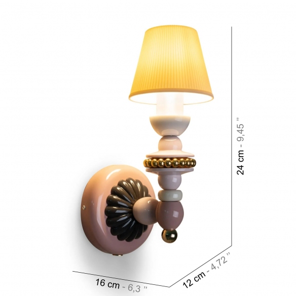 Lampada da parete Firefly, realizzata in porcellana lucida con paralume in porcellana traslucida. Questa lampada da parete è un complemento d'arredo unico, funzionale ed esclusivo che trae ispirazione dall’amore per l’arte e per la natura. Il design sofisticato è impreziosito dall’eleganza delle tonalità pastello e dalla raffinatezza della porcellana. Firefly emette una luce calda, morbida e piacevole che ricorda la luce delle lucciole per arredare con stile. Ogni oggetto della collezione Firefly reca impresso l’inconfondibile marchio Lladró. Realizzata da Lladró