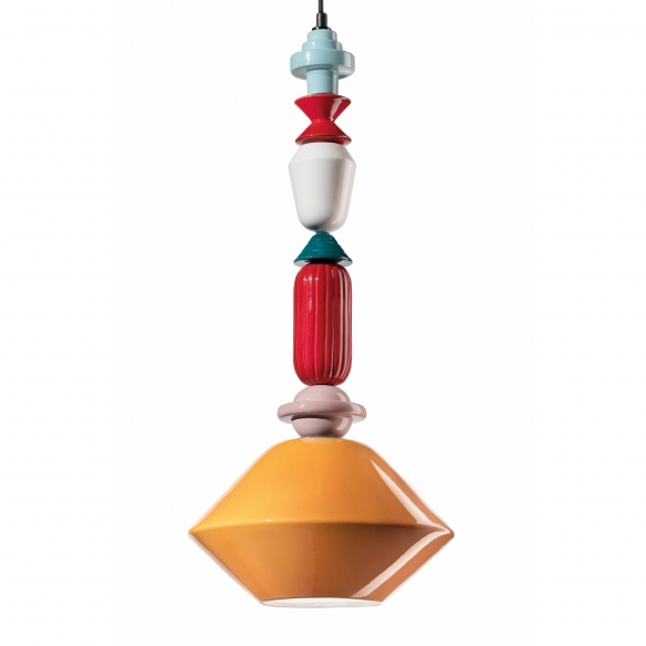 Lampada a sospensione Lariat C2511 dal diametro di 31 cm. Questa lampada a sospensione accattivante proietta un bagliore caldo e invitante in qualsiasi spazio. È realizzata in ceramica e presenta un motivo geometrico, un disegno ripetuto di forme e linee, che ne impreziosisce il corpo illuminante; e la sua forma lunga e slanciata la rende la soluzione perfetta per illuminare ampi spazi. Realizzata da Ferroluce