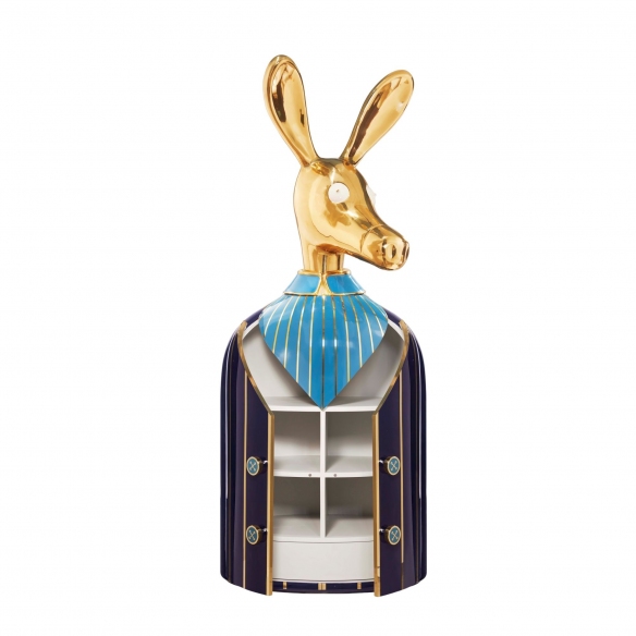 Armadio contenitore Signor Ciuco Blu dall'altezza di 216 cm. Signor Ciuco Blu è un gentiluomo distinto. Si veste sempre all’ultima moda e si prende molta cura del suo aspetto. È un uomo mondano e una grande fonte di fascino per coloro che lo circondano. È anche un cabinet blu e ha una faccia felice. È realizzato in materiali pregiati. È incredibilmente bello, ci stupisce e ci toglie il fiato! Disegnato da Matteo Cibic