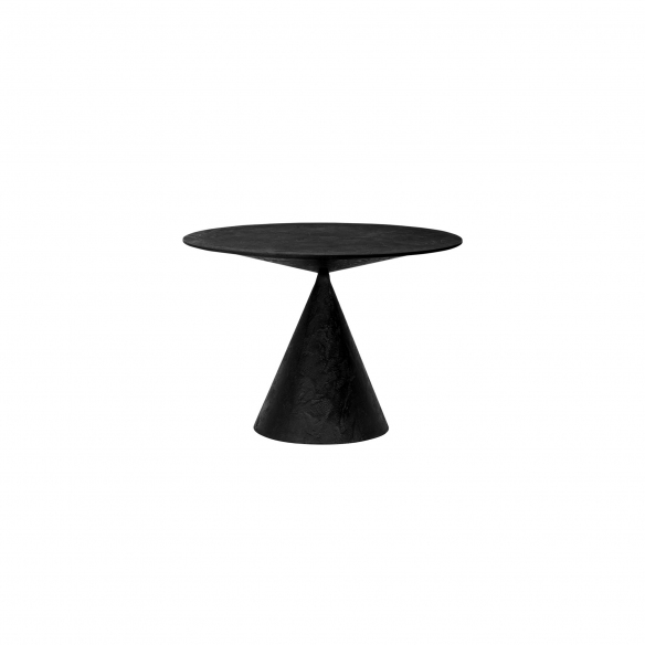 Tavolo Clay dal diametro di 120 cm. Con un profilo incredibilmente aggraziato ed elegante, il tavolo Clay è una sintesi perfetta di arditezza tecnica e invita lo spettatore ad apprezzare la perfezione delle sue forme, coniche e piene, apparentemente a mezz’aria ma armonicamente giustapposte in un punto di stabile equilibrio, creando una tensione visiva intrigante e avvincente. Clay è offerto nella versione outdoor con base in poliuretano rigido e piano in cristallo o spatolato. Disegnato da Marc Krusin