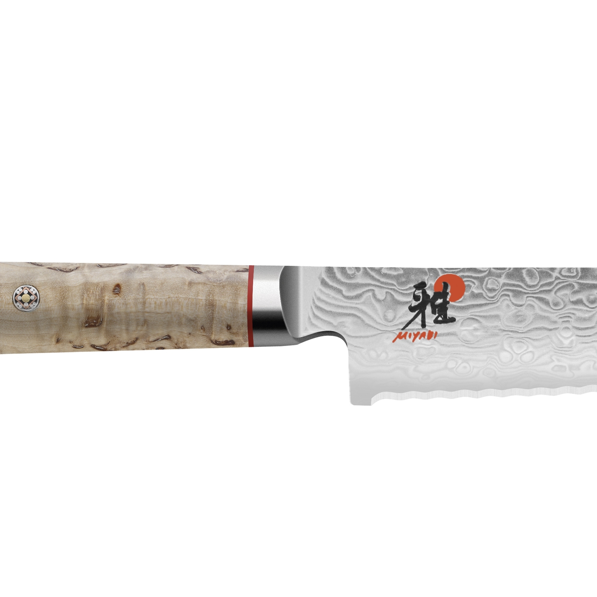 Coltello per il pane realizzato in acciaio Micro Carbide MC63, appartenente alla linea 5000 MCD. Ha una lama importante da 23 cm, resistente alla ruggine e alla corrosione, e un elegante manico in legno di betulla, impreziosito da scorci di scarlatto, che offre una presa comoda e sicura. Il suo bordo seghettato è ciò che lo differenzia degli altri strumenti da taglio e progettato per scivolare facilmente attraverso le croste più spesse e croccanti. È un classico che non può mancare in cucina! Fatto da Miyabi