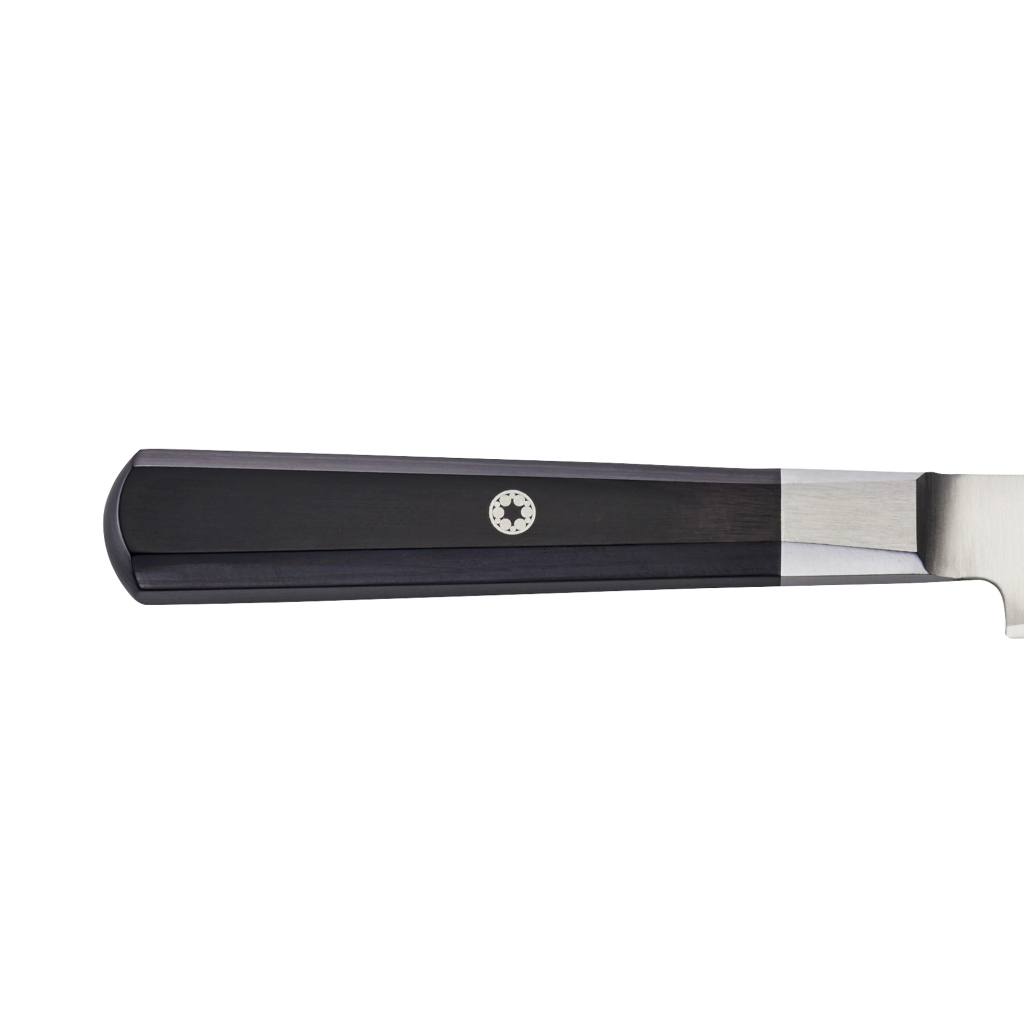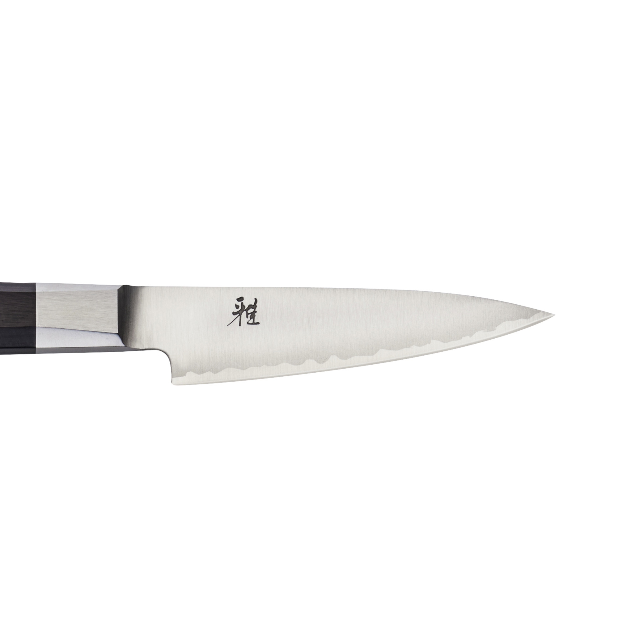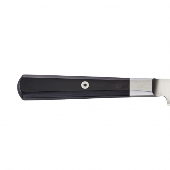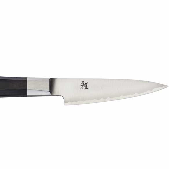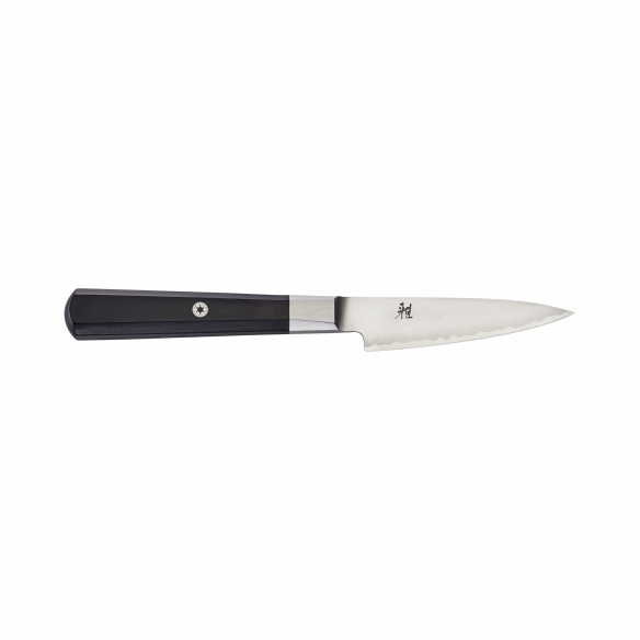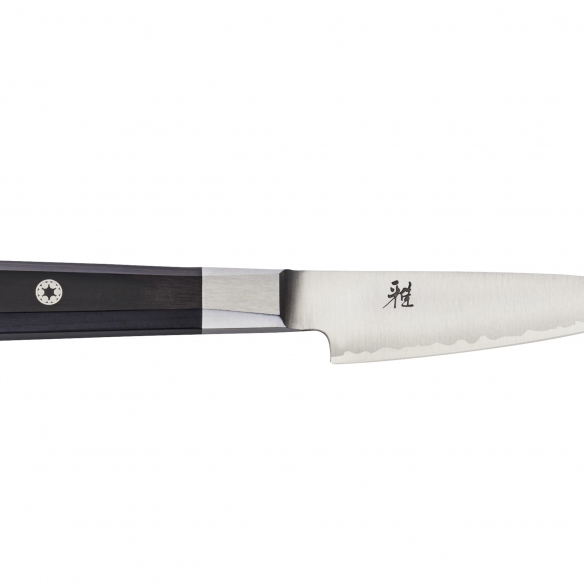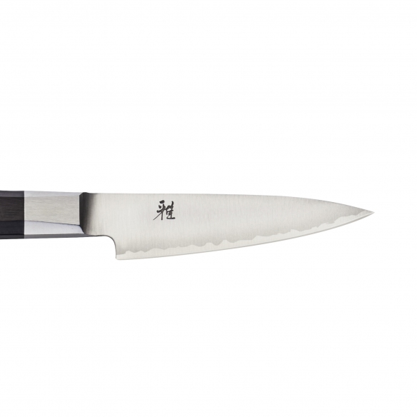 Coltello Kudamono realizzato in acciaio al carburo FC61, appartenente alla linea 4000 FC. È un accessorio pensato per una cucina di alto livello. Ha una lama affilata da 9 cm, resistente alla ruggine e alla corrosione, e un elegante manico in legno di pakka nero che offre una presa comoda e sicura. È veramente versatile ed è ciò che può fare la differenza. Fatto da Miyabi
