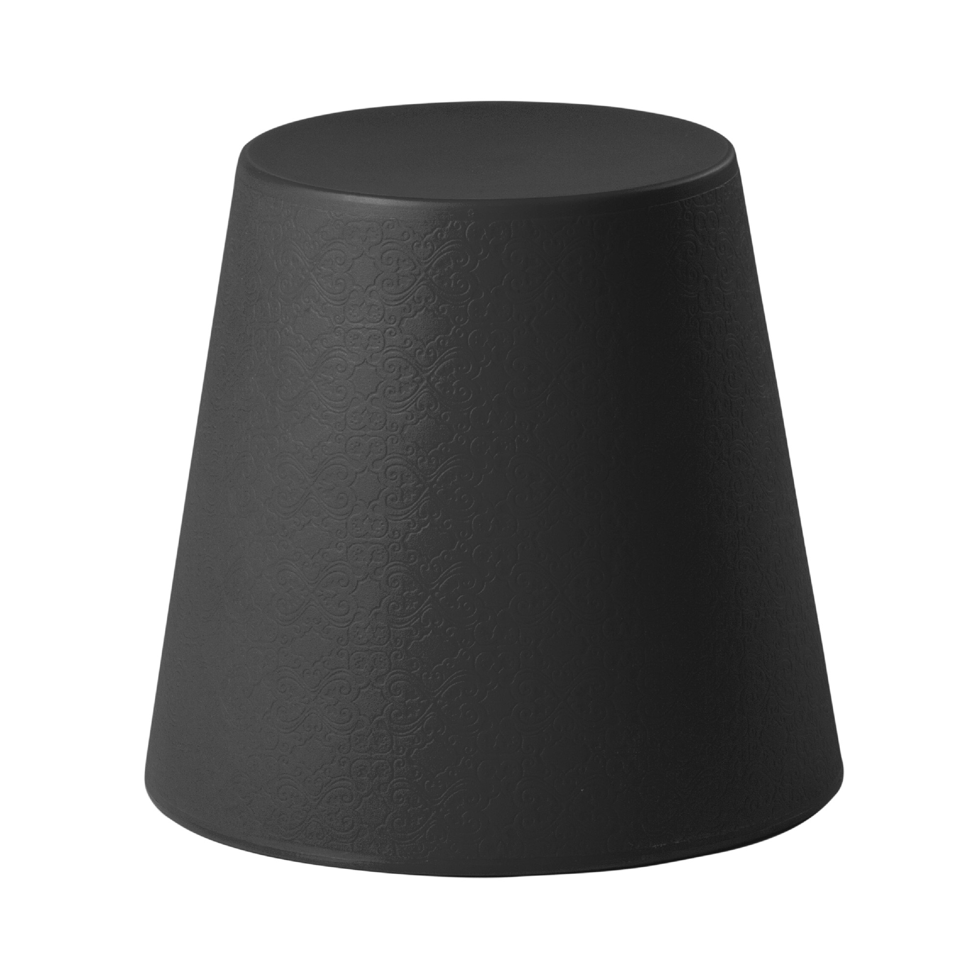 Sgabello realizzato in polietilene, appartenente alla collezione Ali Baba, dall'altezza di 41 cm. La peculiare forma ricorda un classico paralume delle lampade della tradizione e conferisce all'oggetto un aspetto raffinato e contemporaneo grazie alla piacevole fluidità delle sue linee che lo rendono particolarmente adatto a contesti moderni e di design. Con un'ampia gamma di colori tra cui scegliere, questa graziosa seduta cattura lo sguardo per lo splendido motivo damascato, ricco di particolarismi e ghirigori, che prendono vita quando la luce si infrange su di essi, donando ulteriore ricercatezza estetica e interesse visivo. Disegnato Giò Colonna Romano.