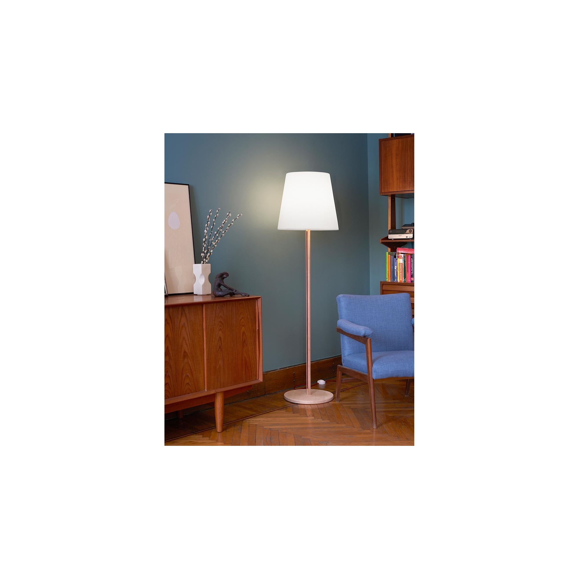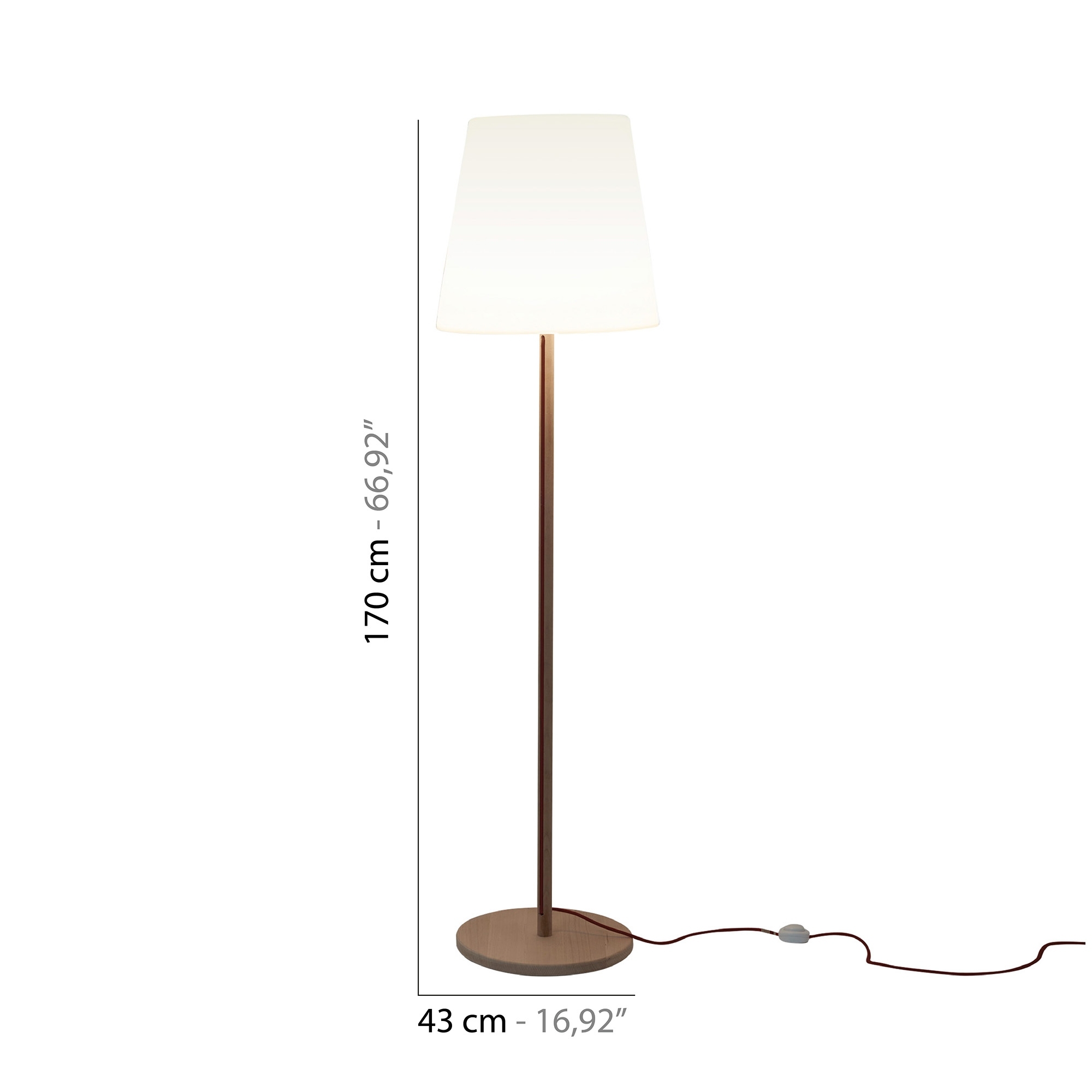 Lampada da terra realizzata in polietilene, appartenente alla collezione Ali Baba Wood, dall'altezza di 170 cm. Questa splendida lampada da terra è un design classico con un'eleganza che va oltre i limiti della temporalità, per donare fascino e interesse ad ogni spazio grazie al calore del legno di faggio che ricopre la base e lo stelo, reso più attuale e moderno dal materiale plastico con cui è stato composto il suo diffusore. Disegnata da Giò Colonna Romano.