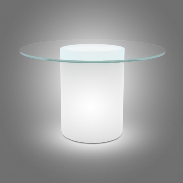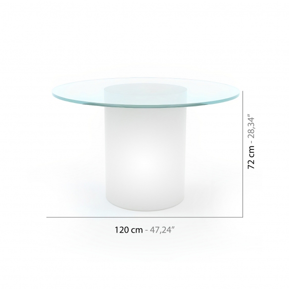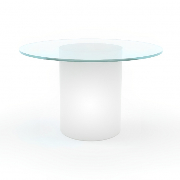 Tavolo Arthur realizzato in polietilene con piano in vetro, dal diametro di 120 cm. Elegante e raffinato, questo splendido tavolo diventerà il fulcro di ogni tuo spazio grazie alle sue forme ben studiate, in un gioco di geometrie diverse e materiali pregevoli. La peculiarità sta nella sua base che si illumina per offrire quel tocco in più di cui hai bisogno e aggiungere un ulteriore punto luce sia in aree interne che esterne. Progettato e realizzato da Slide Design Studio.