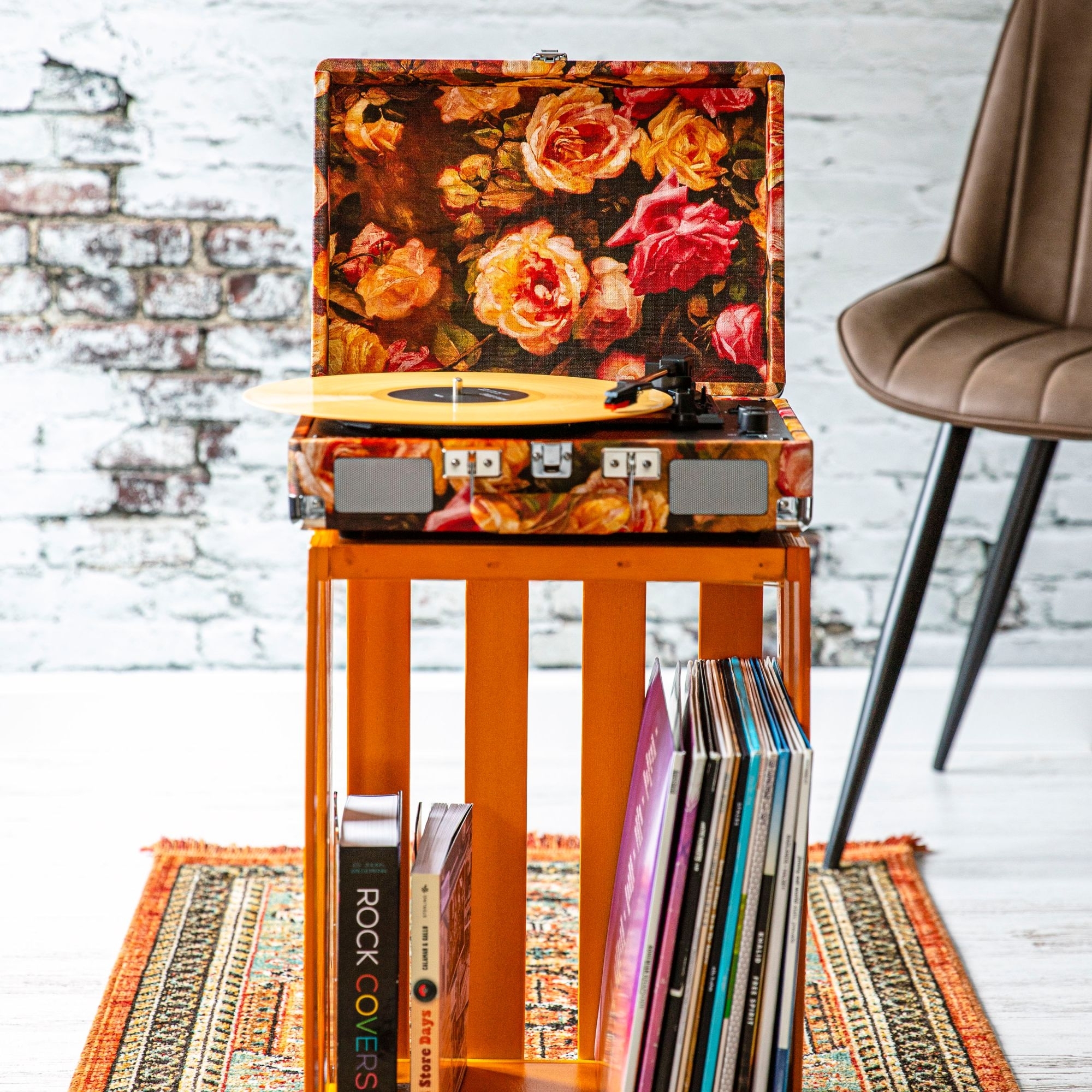 Giradischi Bluetooth Cruiser Plus disponibile in una vasta gamma di colori. Cruiser Plus è un giradischi portatile e compatto che combina la nostalgia del vinile con la comodità della connettività Bluetooth. Include un altoparlante incorporato e una copertura protettiva ed una maniglia per trasportarlo facilmente. È dotato di un braccio direzionale e di una testina di riproduzione in grado di riprodurre dischi a 33 e 45 giri. Inoltre, è possibile collegare un amplificatore esterno tramite l'uscita RCA per un suono ancora più potente. Realizzato da Crosley